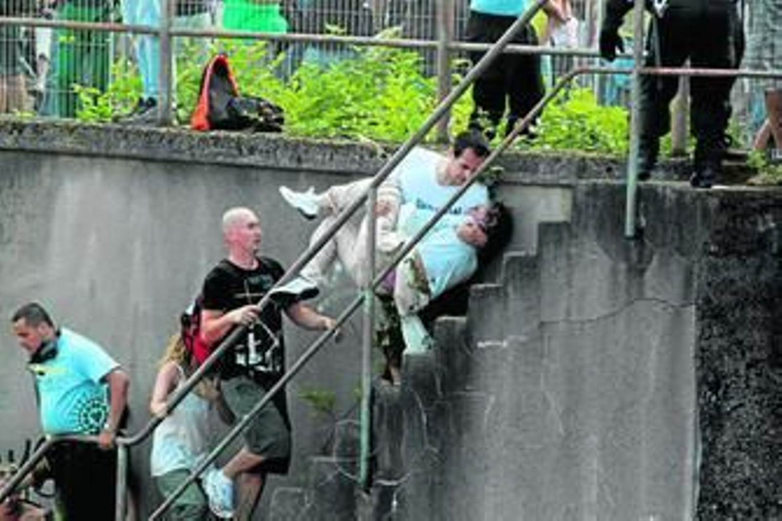 Según Alberto, casi a la salida por el túnel había "vallas tiradas en el suelo y gente llorando y deprimida con la ropa sucia, pero pensábamos que la gente iba borracha".