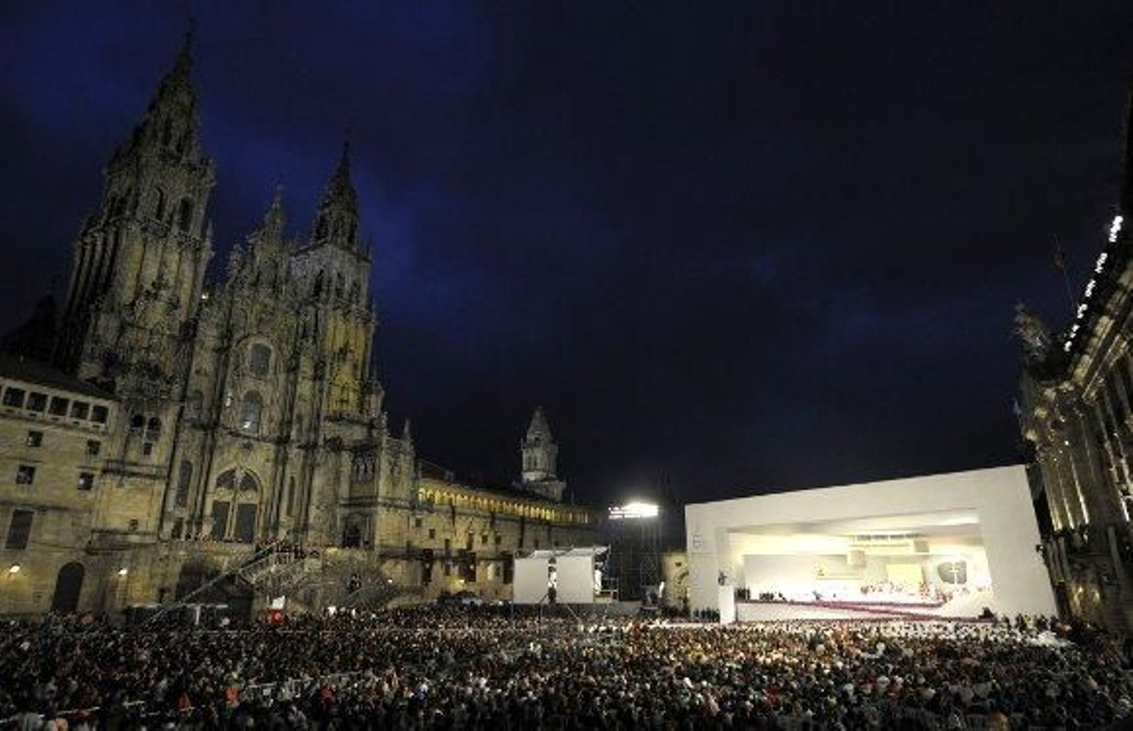 Unas siete mil personas han asistido al acto en la monumental plaza del Obradoiro, en un gran escenario blanco dispuesto a los pies de la catedral de Santiago de Compostela, mientras que otros miles la han seguido en las diferentes pantallas gigantes instaladas en varias plazas de la ciudad.