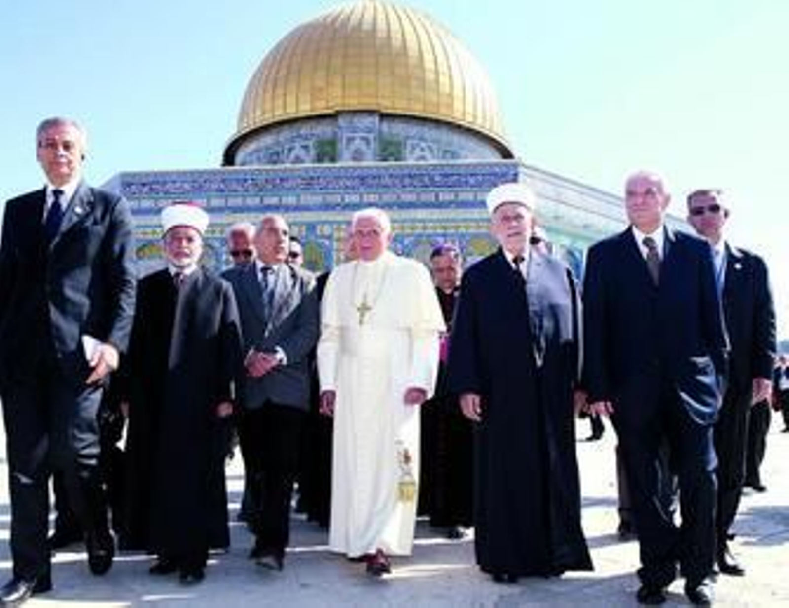 Ante el Gran Muftí (máxima autoridad religiosa musulmana) de Jerusalén, Mohamed Ahmed Husein, el Papa abogó por un "diálogo sincero para construir un mundo de justicia y paz para las generaciones venideras". El Gran Muftí le pidió que "interceda para que cesen las agresiones contra nuestras gentes, nuestra tierra y nuestros lugares sagrados en Jerusalén, Gaza y Cisjordania".