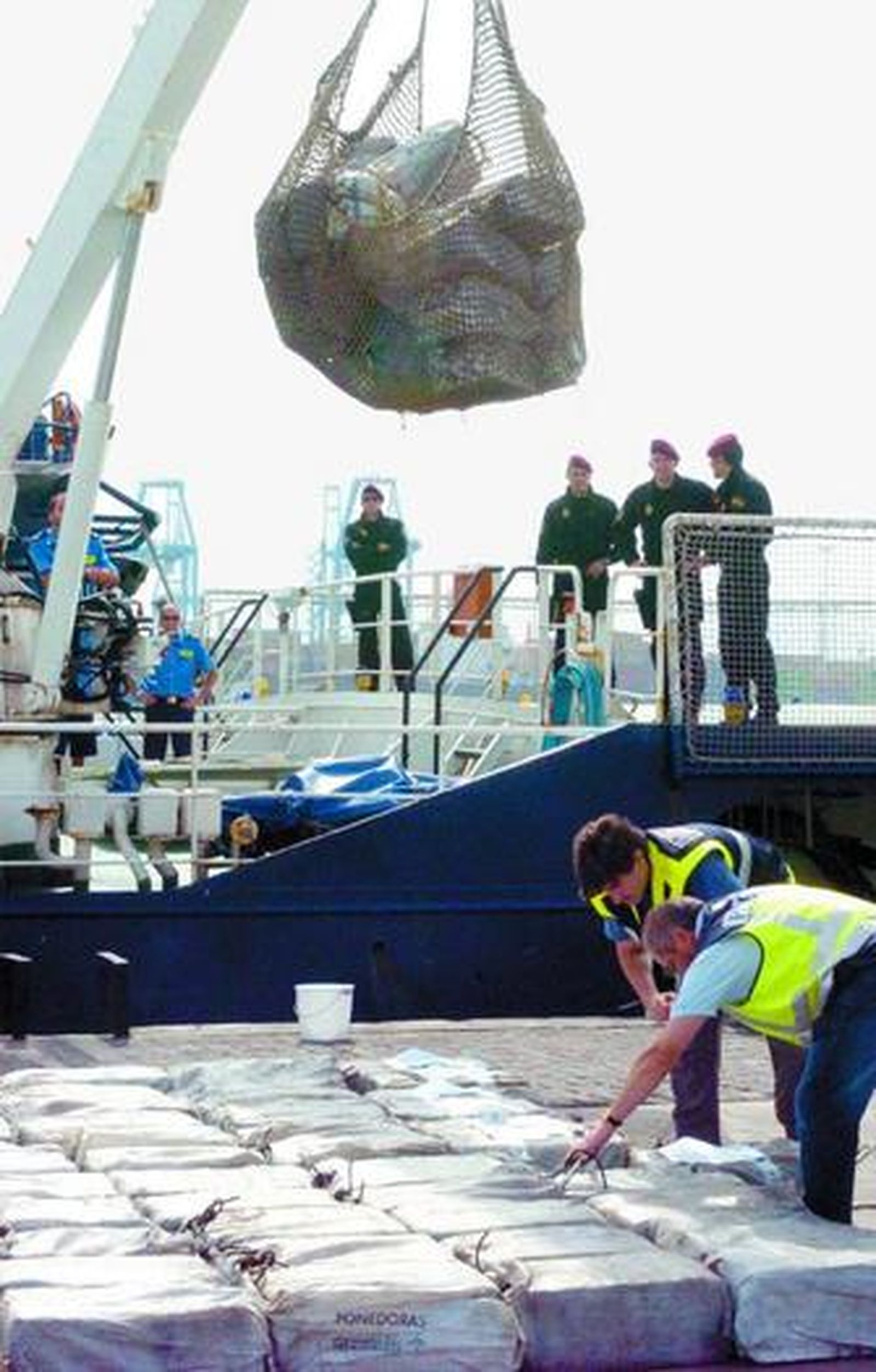 Una vez desembarcados del buque de operaciones especiales de la Agencia Tributaria Petrel los 80 fardos de cocaína interceptados a bordo del pesquero abordado, el Río Manzanares, registrado en Venezuela y sin bandera, lo que se conoce como un "barco pirata", y en el que viajaban cinco tripulantes de origen venezolano, a los que se detuvo, el comisario explicó que ésta fue la primera fase de la operación, que desarrollaron agentes del Grupo Especial de Operaciones de la Policía Nacional.
