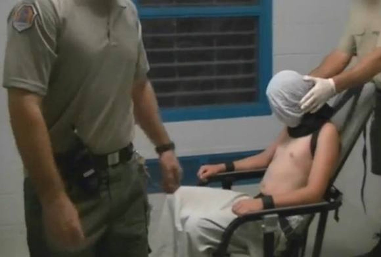 En uno de los episodios más duros del reportaje periodístico, Voller aparece con la cabeza cubierta por una capucha blanca que le dificulta la respiración, y se ve cómo le atan a una silla con grilletes, las piernas, los brazos y el cuello, y lo dejan solo en castigo por tratar de autolesionarse. "Relájate (...) Volveremos a visitarte. No te queremos mantener así", le dice al adolescente uno de los guardas.