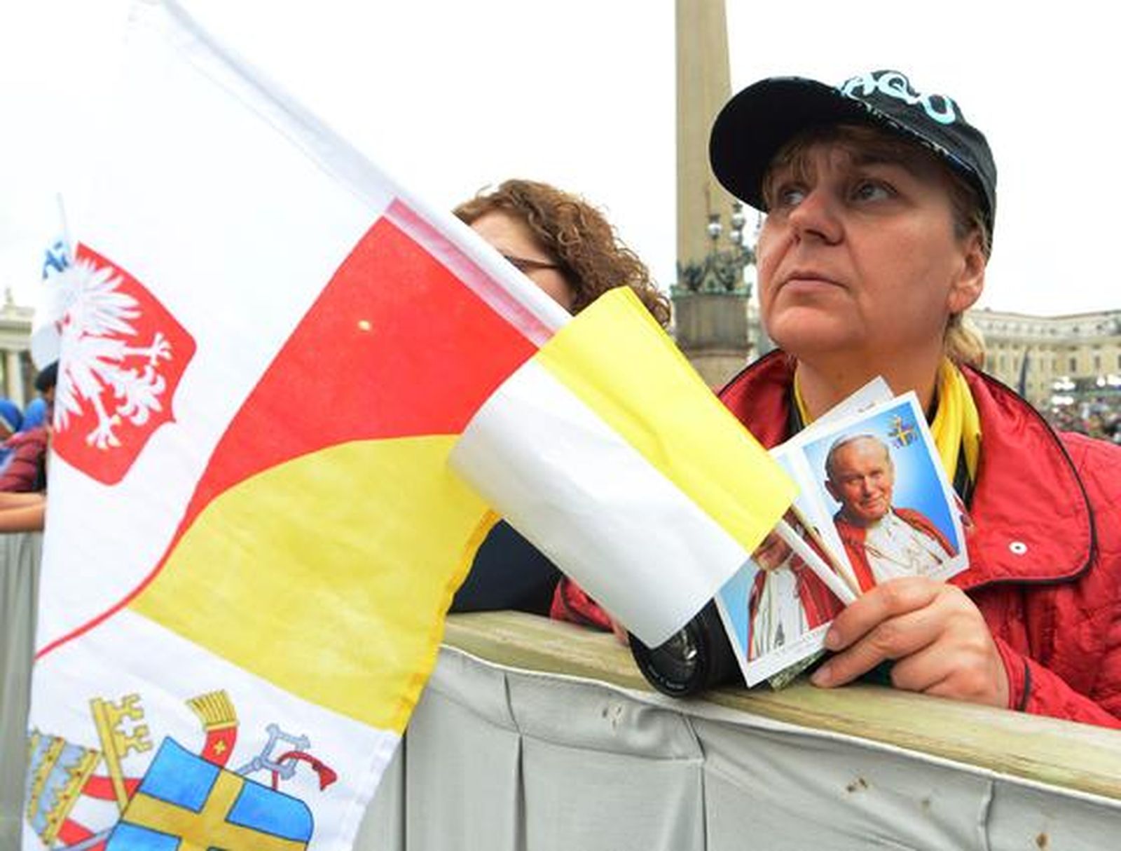 El rojo y blanco, de la bandera nacional de Polonia, pusieron mayoritariamente color a una Plaza de San Pedro gris bajo el cielo encapotado de Roma y en la que las banderas españolas y de países latinoamericanos eran visibles.