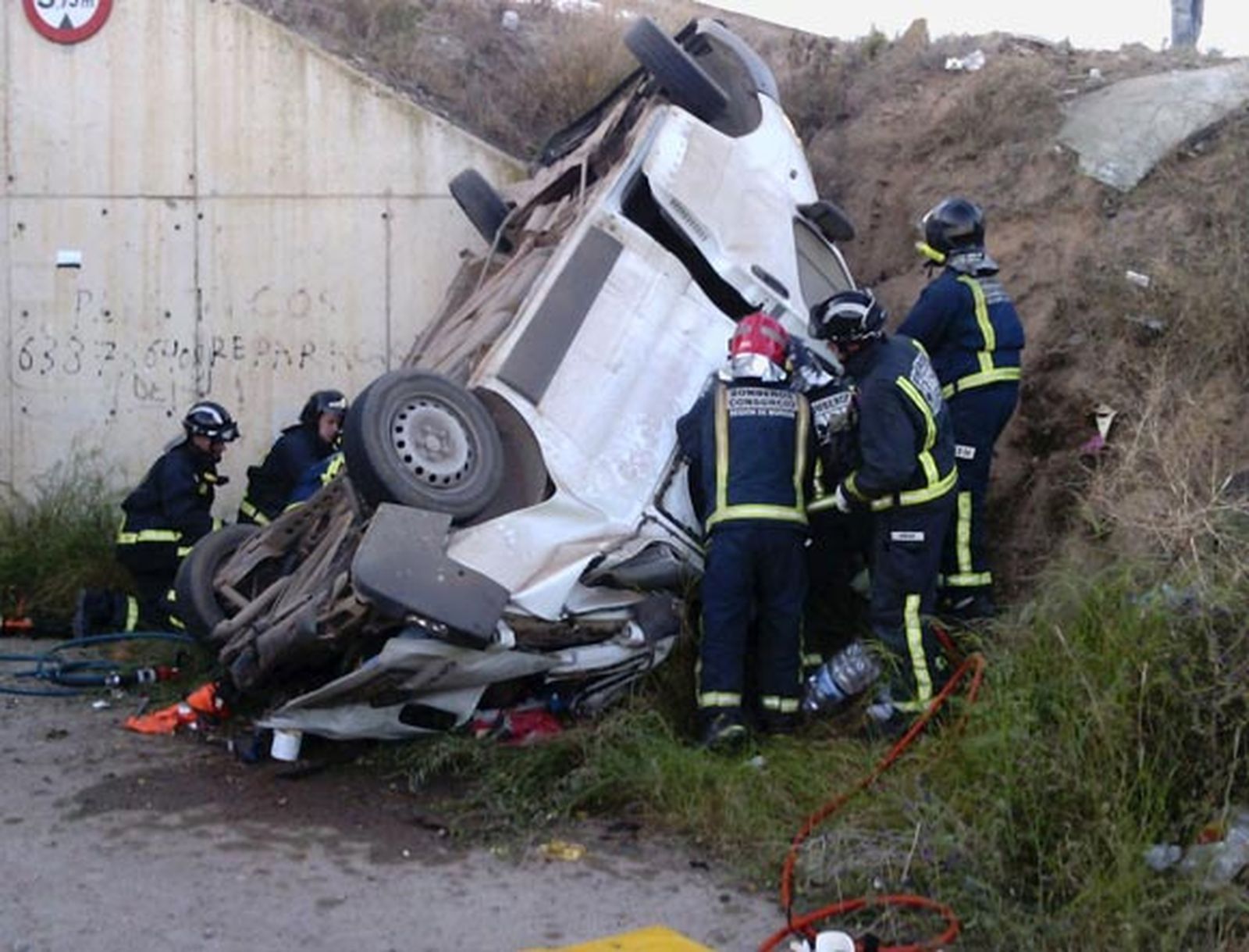 Cinco personas han muerto y tres han resultado heridas al caer una furgoneta por un puente. Los fallecidos eran jornaleros marroquíes y se dirigían a Águilas desde Lorca por la autovía RM11.