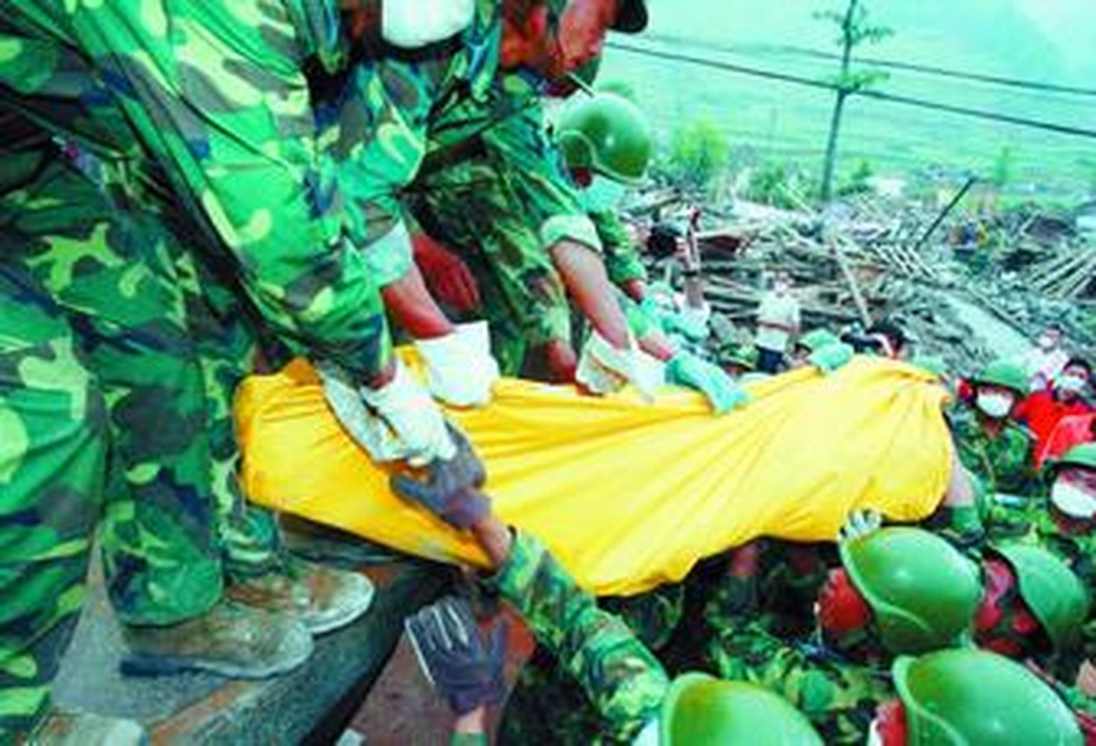 En el lugar de destino de las lanchas militares, el ambiente es casi bélico: tiendas de campaña, miles de soldados y, en el aire, panfletos lanzados desde helicópteros en los que se dan ánimos a los reclutas y se les pide que trabajen al máximo por salvar al país. Junto a los soldados, miles de personas de las montañas eran evacuadas por temor a desprendimientos y corrimientos de tierra, y que lo han perdido todo. "Mi mujer y mi hijo murieron. No me queda nadie, esto es muy cruel", asegura con amargura Hui Lian, uno de los "refugiados", que lleva en un hatillo lo único que pudo salvar de su casa, apenas unas ropas.