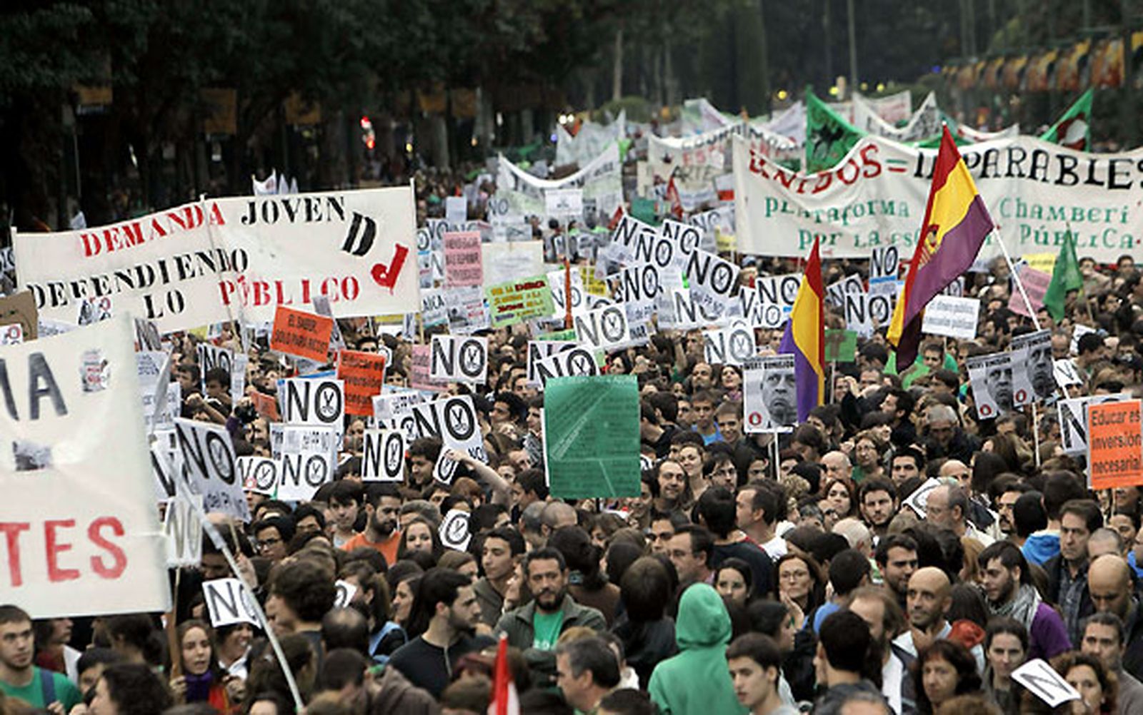 La manifestación en Madrid ha partido de la Plaza de Neptuno y finalizará frente al Ministerio de Educación, en la calle de Alcalá, presidida por una pancarta en la que se puede leer: "Por la educación pública. Por el futuro de nuestros jóvenes". Estudiantes familias y profesores han marchado por el Paseo del Prado coreando gritos como "estudiantes unidos, adelante", "esto nos pasa por un gobierno facha", "contra los recortes huelga general" y "dimisión".