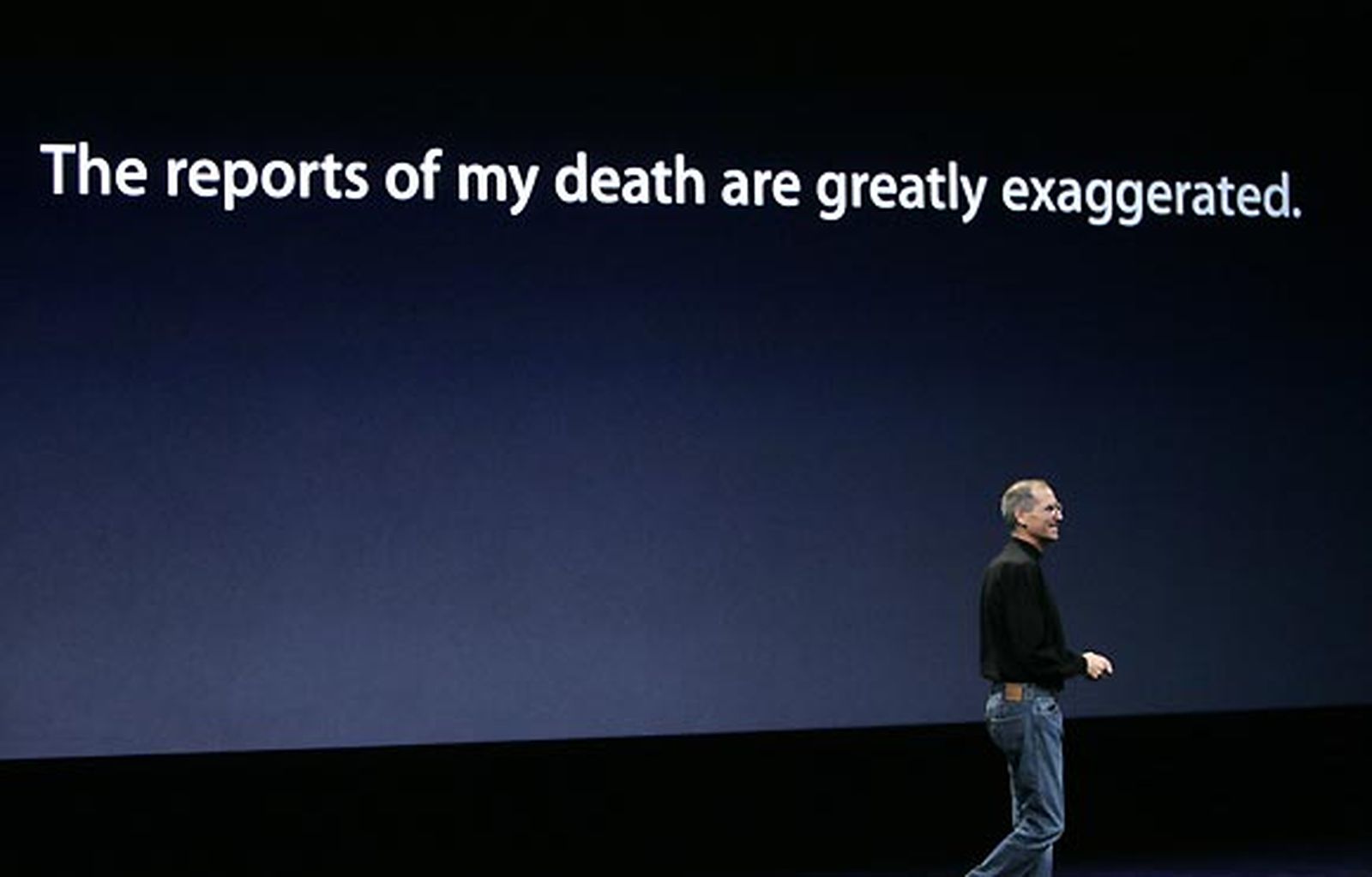 Pese a las novedades, uno de los puntos álgidos de la cita de San Francisco fue ver aparecer en escena a Steve Jobs, dos semanas después de la publicación, por error, de la noticia de su muerte, una anécdota que el propio Jobs zanjó al inicio de su presentación: “Se han exagerado mucho los rumores sobre mi muerte”.