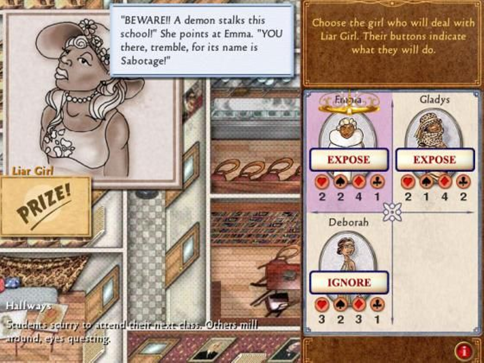 El atípico título 'Dangerous High School Girls in Trouble!' (PC, Mousechief), escrito por Keith Nemitz y Adrianne Ambrose, es otro de los aspirantes. Se trata de una original aventura gráfica que tiene lugar en 1920, protagonizada por un grupo de chicas. Su desarrollo, basado en ilarantes conversaciones y entretenidos minijuegos, ya le valió el galardón al título Más innovador concedido por la the Casual Games Association.
