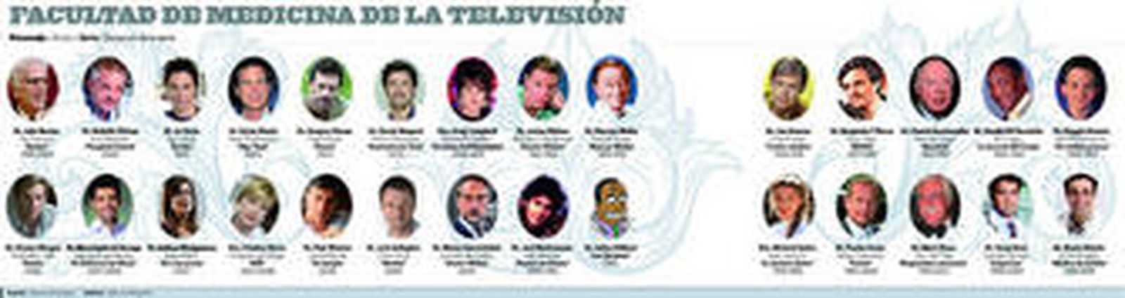 Las series de médicos retomaron músculo a partir de la repercusión del doctor Doug Ross. Sin George Clooney Urgencias hubiera sido una excelente ficción, igual de maltratada en España, pero no estaría en el olimpo de los buenos recuerdos. Los doctores seguirán centrando series e historias, de sosegados psiquiatras como Gabriel Byrne en En terapia a forenses inquietantes como Dexter. Los ha habido detectives, como Dick Van Dyke, el de Mary Poppins, en Diagnóstico asesinato, y chirriantes niñatos prodigios como Doogie Howser. Los que llevan más tiempo en su consulta sin visos de jubilación son el doctor Hibbert y el fraudulento Riviera. En Los Simpson.