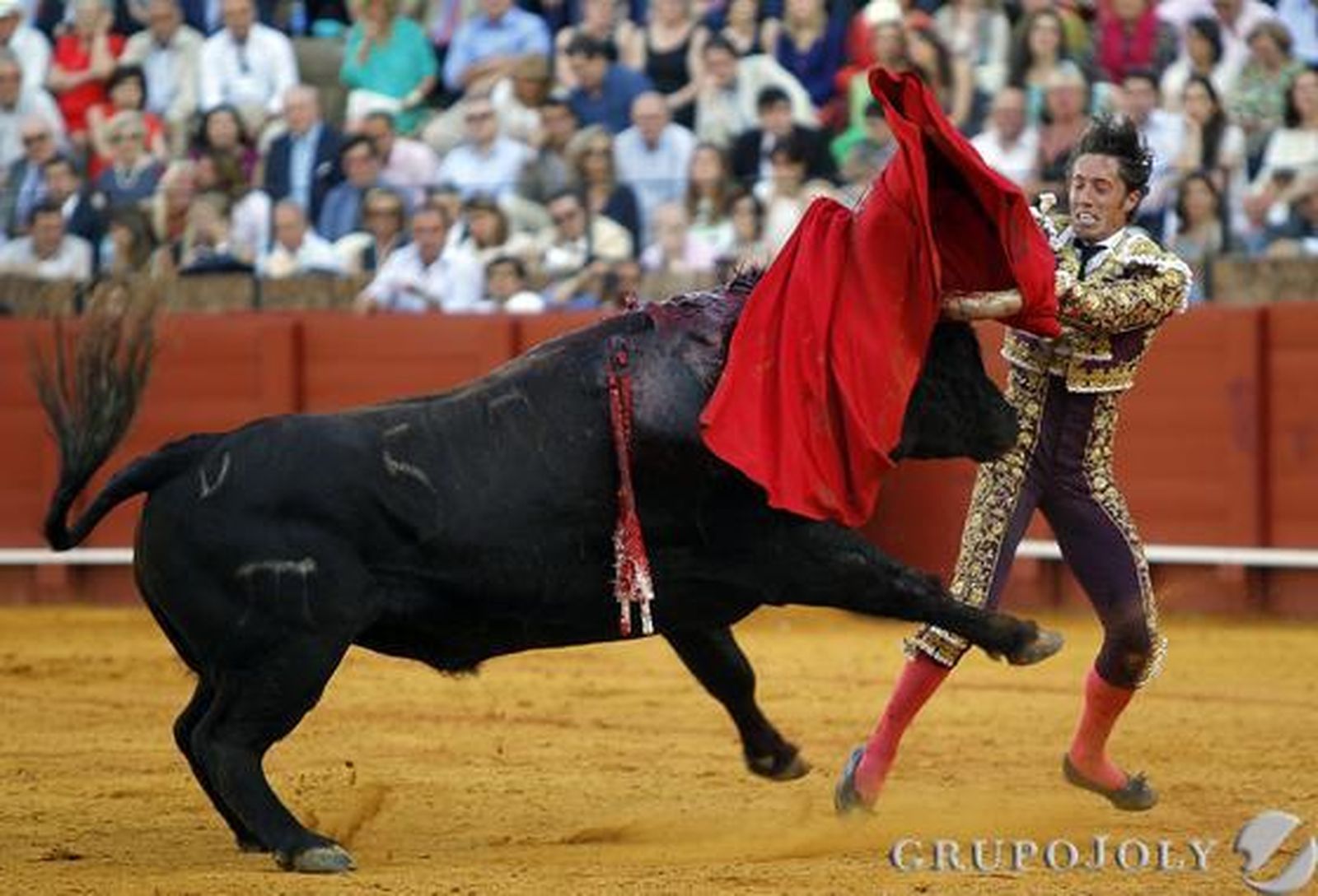 Transcurría la tarde, como casi siempre, con un paseito de los cabestros por el dorado albero –el primero, con andares del carnero de la legión y derrengado, fue devuelto y en su lugar había saltado un toro de Jandilla–. Abellán y Escribano habían terminado sus primeras actuaciones y saltó como tercer toro, Niñito, con el hierro de El Pilar, cinqueño, colorao, de 545 kilos, altote y bien armado, cumplidor en varas y que brilló tras las telas con alegría, recorrido, fondo y mucho motor. David Mora se estiró muy bien a la verónica. Con la muleta apostó fuerte tras una apertura en la que sufrió una colada escalofriante por el pitón izquierdo. En las rayas, relajado, aprovechó la inercia del astado y ligó con la diestra. Se hizo presente de inmediato la música, porque aquello sonaba a gloria celestial tras tanta carestía de días anteriores, con un astado que planeaba una y otra vez tras las telas. En las afueras, Mora llegó a dar series, con ambas manos, de más de cuatro muletazos, siempre con las zapatillas asentadas, en las que faltó por momentos reposo. En los medios, otra vibrante serie, con airoso remate. El torero supo medir la faena. Cortó cuando el público estaba enardecido y cerró con unas manoletinas muy ceñidas y un par de pases de pecho de verdad. Se tiró de verdad, pero la espada cayó muy baja. Volaron pañuelos. El presidente sacó el suyo para conceder un trofeo. Parte del público insistió en solicitar la segunda oreja, que no atendió el usía por la mala colocación de la espada.