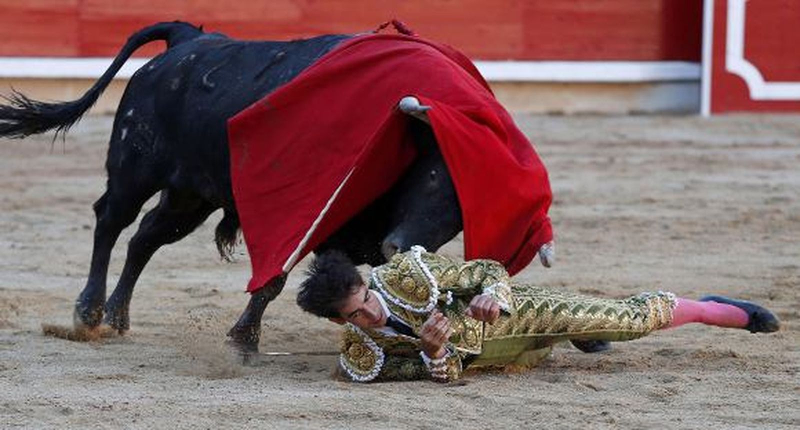 El malagueño Saúl Jiménez Fortes sufrió una cogida por el tercer toro de la tarde.