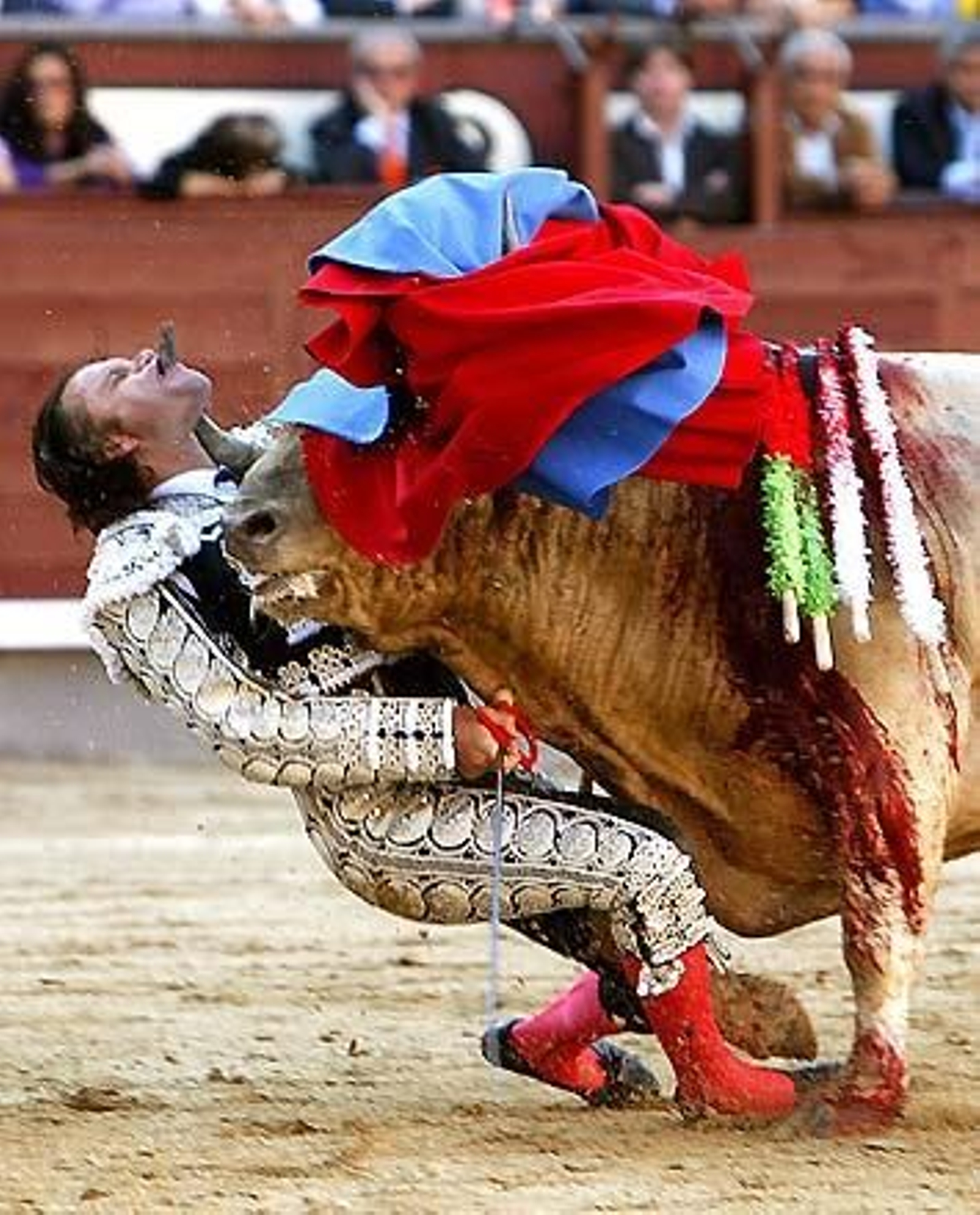 Aparicio perdió pie en un momento de la faena de muleta, y al tratar de levantarse, el toro fue a por él, alcanzándole de lleno en el cuello, metiéndole el pitón por encima de la nuez y atravesándole hasta salir por la boca.