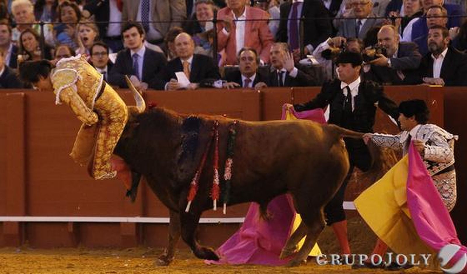 El jovencísimo diestro limeño -tiene únicamente 19 años- se empleó a fondo ante el colorao sexto, que salió con pies y al que cuidaron en varas. El toro se vino abajo pronto. Pero el peruano, muy decidido, se pasó muy cerca los pitones en muletazos por alto, intercalando pases por la espalda como recurso. Expuso entre los pitones en un epílogo en cercanías. En un abrir y cerrar de ojos, el toro le empaló entre las piernas. Fueron segundos eternos. De lejos y ya de noche, se temía lo peor y se escuchaban gritos de espanto. Afortunadamente, todo quedó en un susto y tras un pinchazo y estocada dio una vuelta al ruedo.