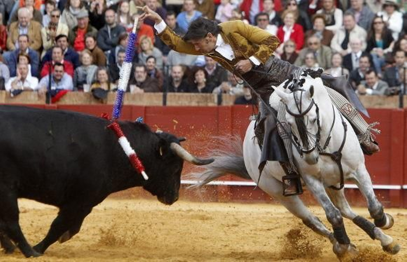 El maestro Ángel Peralta perseguía ayer con su mirada a los caballos y los rejoneadores en la gélida tarde sevillana, que como frío acero, hundió un rejonazo a los ánimos de los espectadores de la Maestranza. De principio a fin, el genio del rejoneo vivió un espectáculo con Cartagena, Ventura y Hernández que no llegó a romper, ni siquiera en un epílogo que culminó con la suerte de la rosa. Me contaba cierto día el Centauro de la Puebla como nació esta suerte: "En una corrida en Sevilla, una mujer muy bella, que se asustó cuando el toro estuvo a punto de cogerme, arrojó una flor para hacerme el quite. Era una rosa que cayó en la arena, entre el toro y yo, una rosa que llevaba clavada en el pecho. Entonces yo me tiré del caballo, até la flor a una banderilla corta y le brindé la suerte: "-¡Para que no se asusten/ en la plaza las hermosas,/ a los toros las heridas/ se las cubriré de rosas!". Brindis poético de un genio de la tauromaquia. Por contra, lo sucedido ayer en el ruedo de la Maestranza fue prosa en una tarde en la que alguien pareció robarnos la primavera. Porque un viento frío pareció adueñarse de todo lo acontecido; cuando estos festejos de rejones suelen decantarse por la brisa del triunfalismo. Por eso, el que la terna compuesta por Andy Cartagena, Diego Ventura y Leonardo Hernández se marchara de vacío es noticia relevante. La corrida de San Mateo-San Pelayo, con escaso fondo, peticiones no abrumadoras y desaciertos en la suerte suprema fueron determinantes para la ausencia de trofeos.