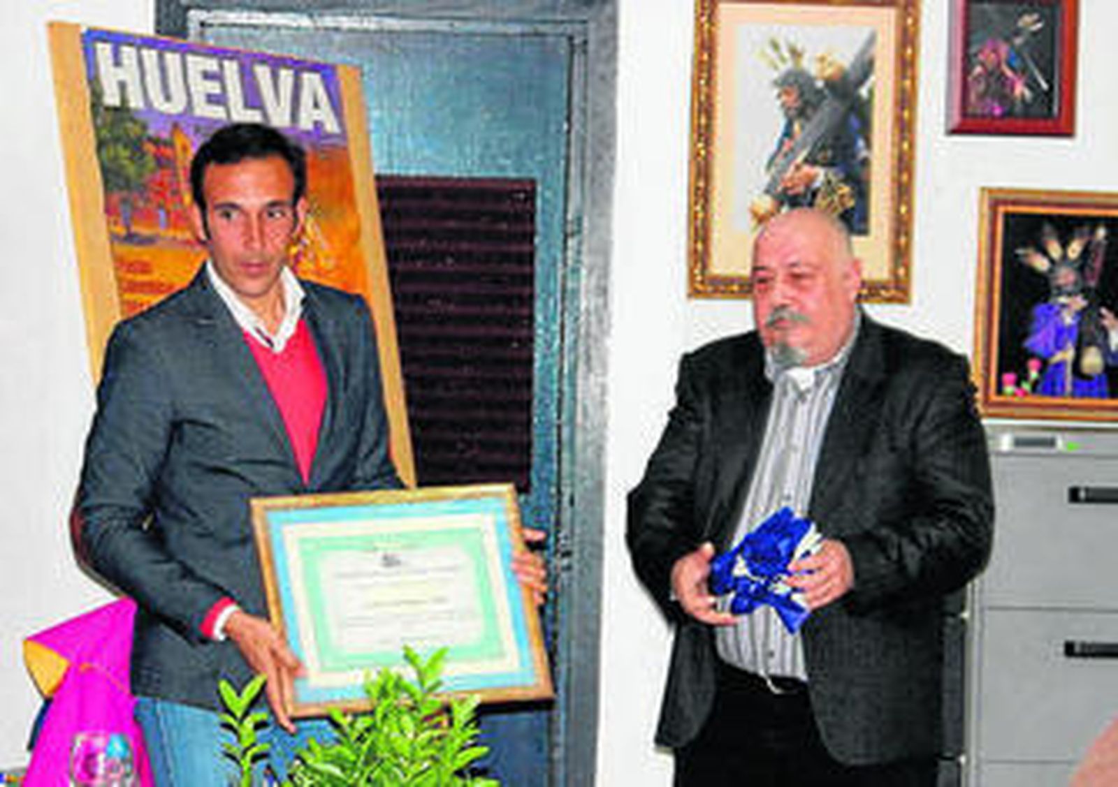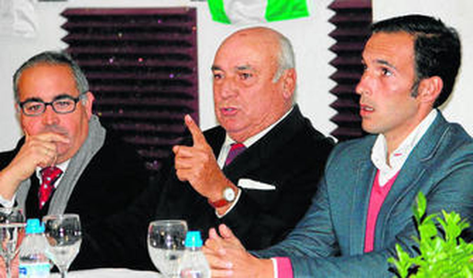 La veterana peña taurina de la capital homenajeó al hombre que propició la sede más duradera de su historia El ganadero onubense compartió la mesa junto a su hijo José Luis