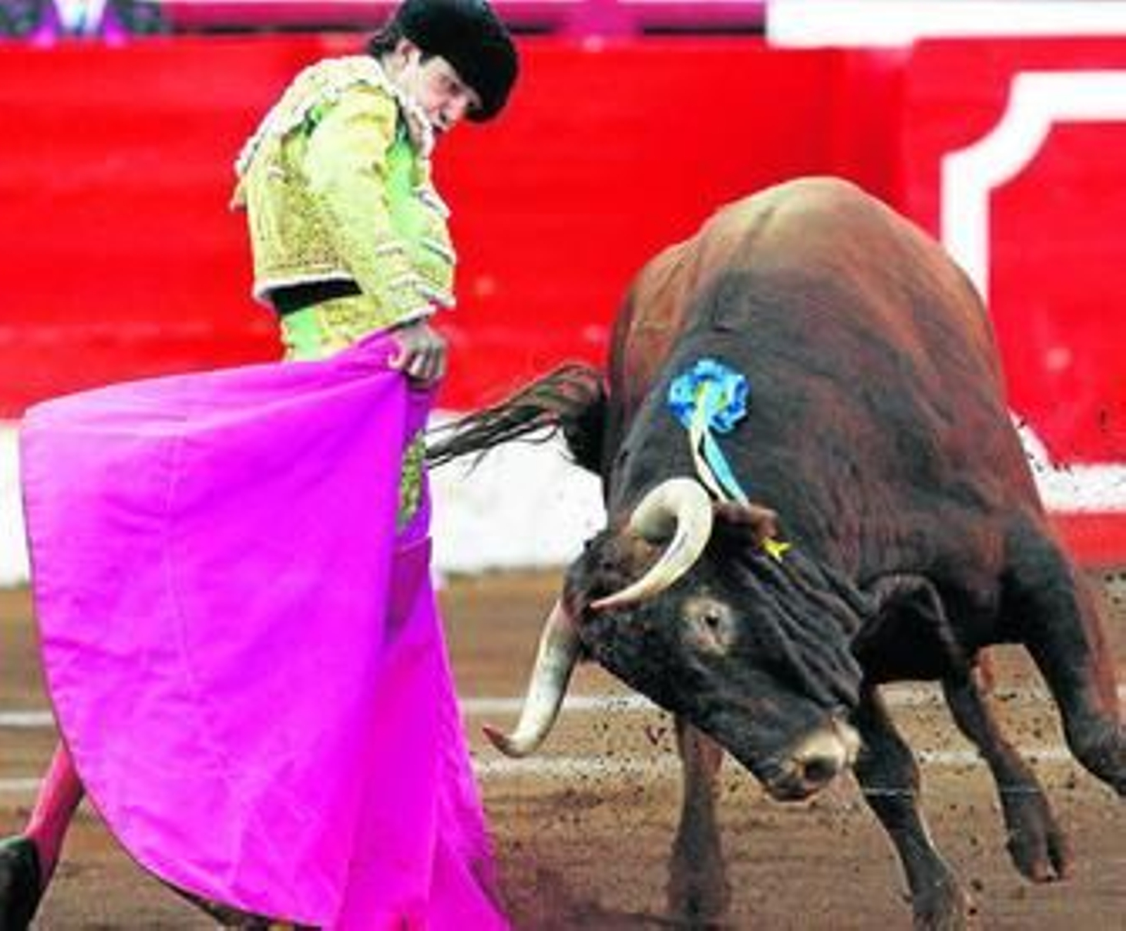 El quinto manseó en varas y parecía embestir a arreones. Manzanares comenzó a muletearlo muy al hilo del pitón, el toro lo vio en mitad de un derechazo y estuvo a punto de echárselo a los lomos.