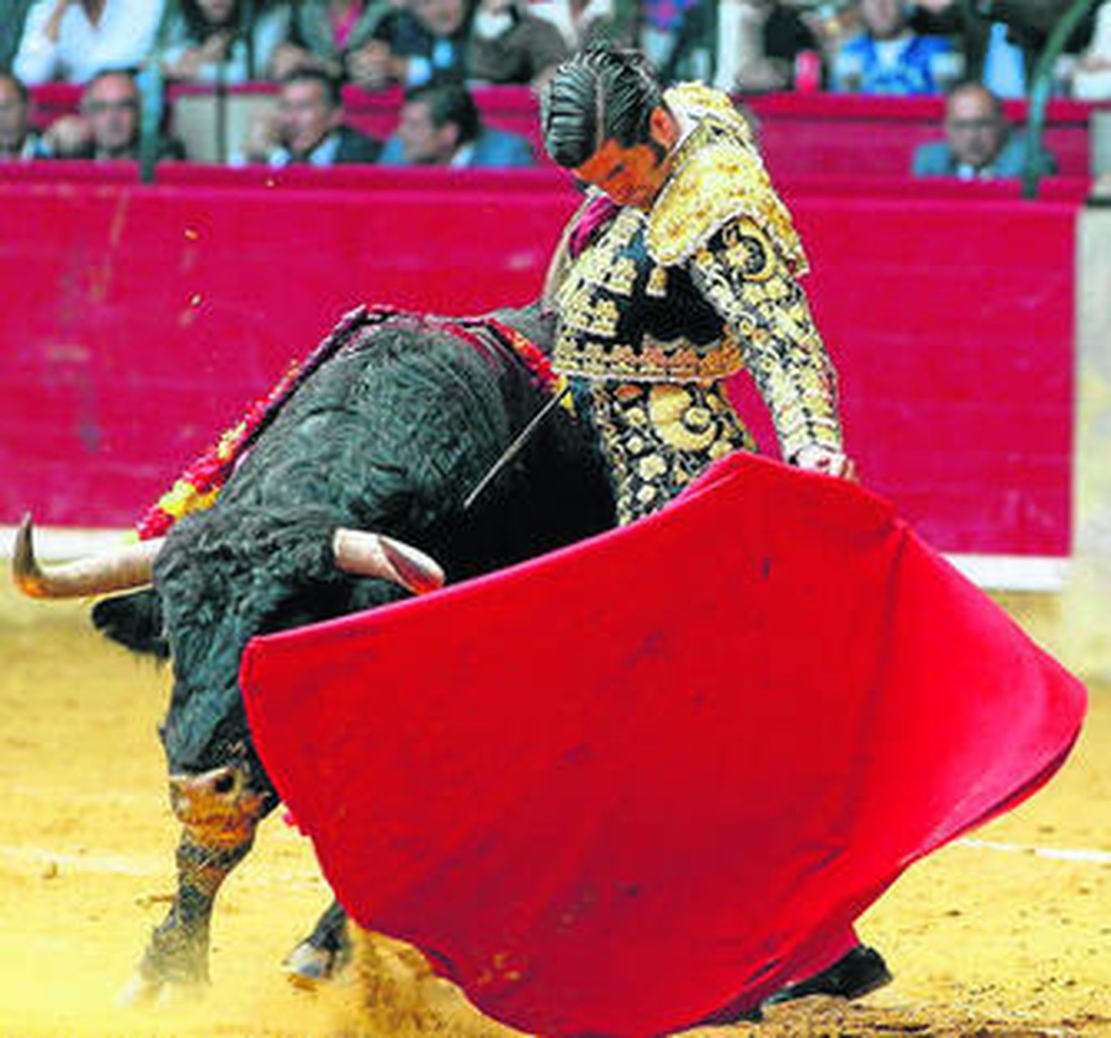 Ya al primero le cuajó el diestro cordobés un hondo saludo a la verónica, casi una docena de lances embraguetados, con las bambas del capote barriendo la arena y ganando terreno hasta los medios, donde los remató con una fastuosa media.