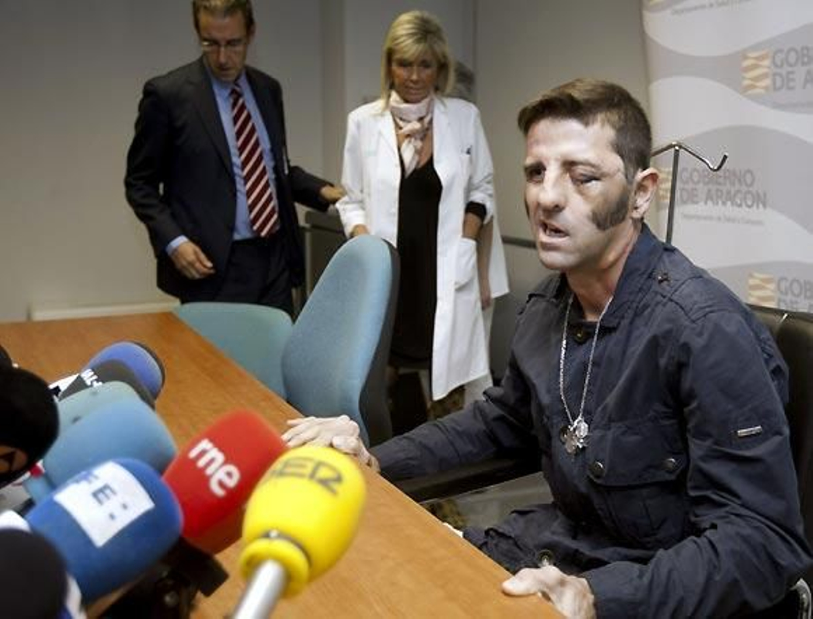 El diestro, de 38 años, fue cogido de gravedad en la segunda corrida de la Feria del Pilar. La cornada le atravesó el rostro y afectó gravemente al ojo izquierdo, la mandíbula, el pómulo y la nariz. Padilla ha estado acompañado en la rueda de prensa por los médicos que le atendieron, entre ellos, el jefe del Servicio de Oftalmología, Luis Pablo; la jefa del Servicio Máxilofacial, Esther Saura, y el gerente de las áreas I y II del hospital, Mario González.
