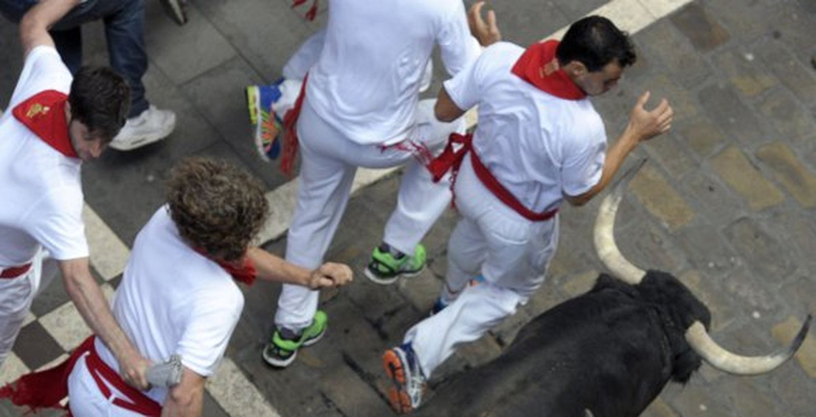 Con un toro negro liderando la manada, la ganadería del matador Joselito ha atravesado la plaza del Ayuntamiento y la calle Mercaderes sin incidentes hasta llegar a la curva de la calle Estafeta, en la que un astado castaño ha resbalado y caído al suelo, lo que ha provocado que alguno de sus hermanos chocara con él sin llegar a romper el grupo. Pese a los numerosos corredores que se han dado cita en la calle Estafeta, los extremeños la han enfilado de principio a fin por el centro de la calzada ajenos por completo a los mozos.