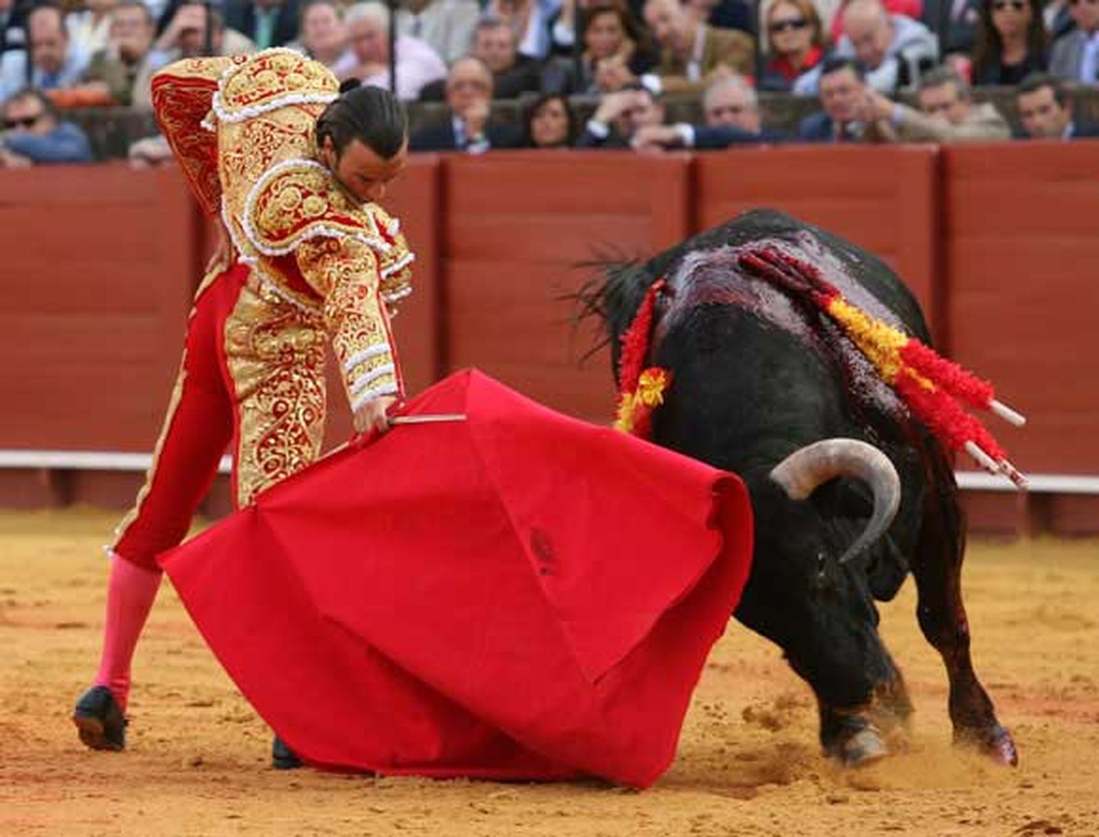 Con el quinto toro, el peor del encierro, que fue pitado con toda justicia en su arrastre, no tuvo opción al lucimiento en la muleta. Con el capote fue muy ovacionado, si bien le faltó naturalidad en esas verónicas de recibo. El animal rindió pleitesía al picador en el segundo puyazo, claudicando, y hubo protestas para su devolución. El presidente esperó pacientemente a su recuperación y dejó que el propio diestro decidiera si lo hundía definitivamente o no para cambiarlo. Morante le dio con mimo unos lances probatorios y ya en la muleta se cargó esta vez, con contundencia, a tan insufrible marmolillo.