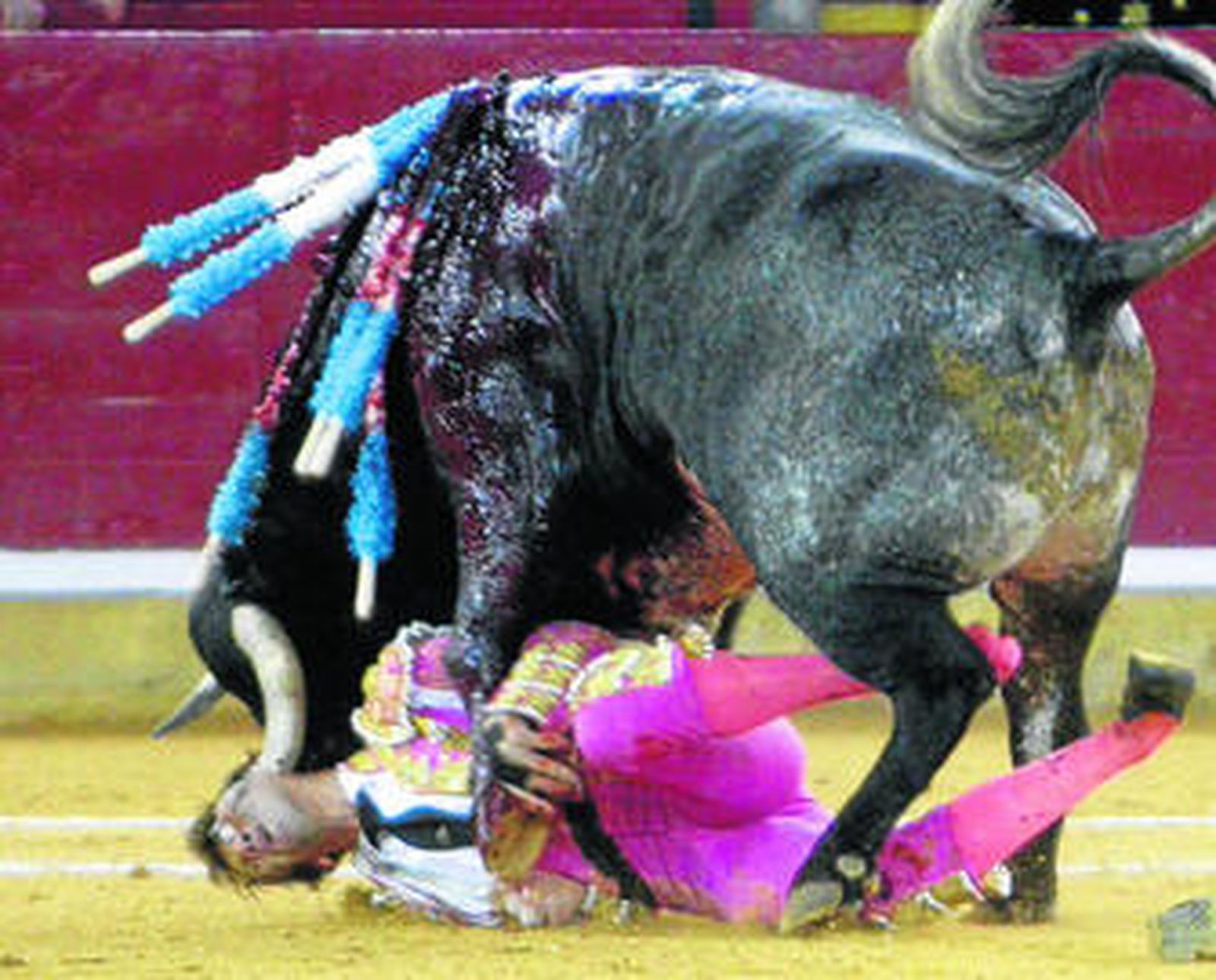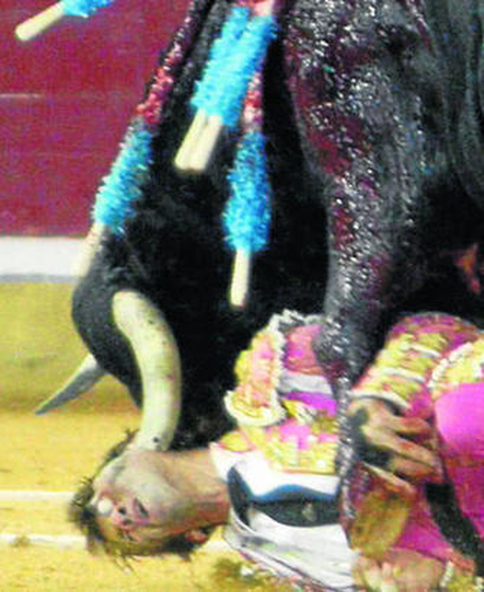 El cuarto toro, de Ana Romero, empitona por el maxilar inferior izquierdo al diestro jerezano y le saca el globo ocular de ese lado, además de producirle numerosos destrozos