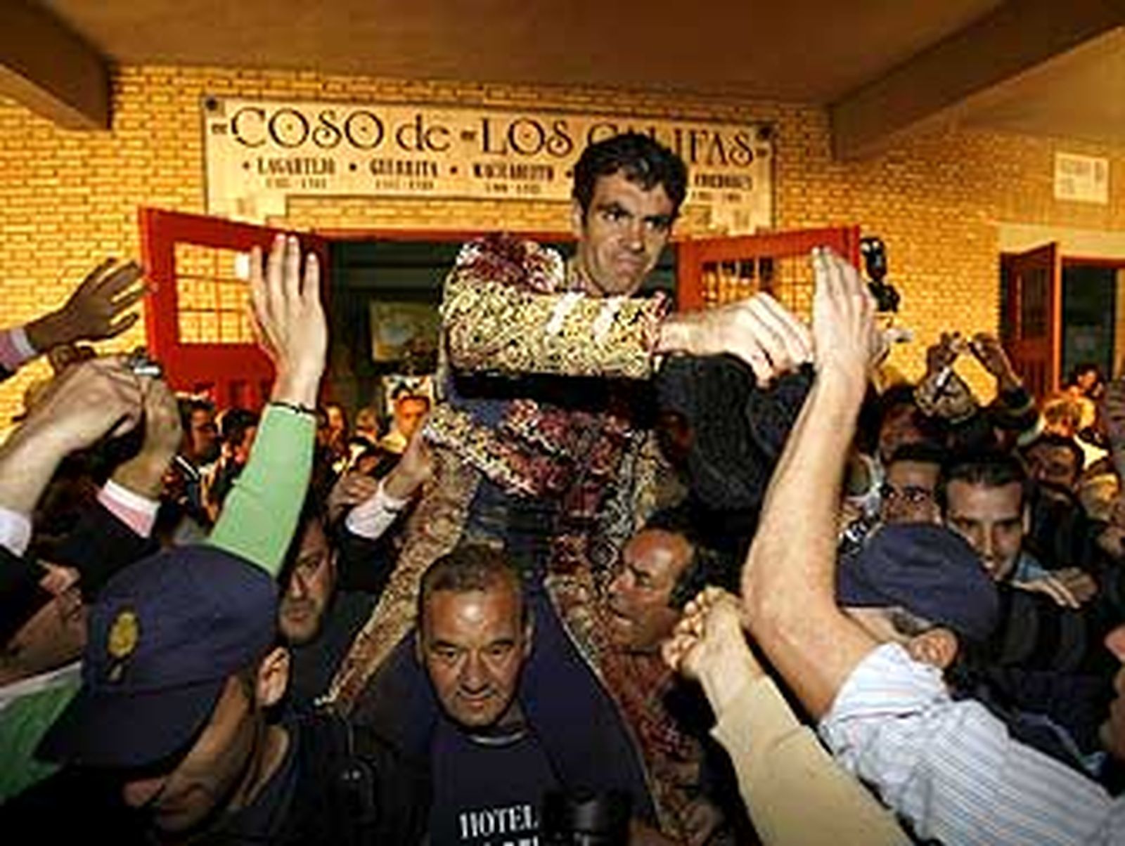 Y así, después, se llevaron a José Tomás a hombros por haber paseado dos orejas sin fuerza que le sirven para poner una nueva pica en Flandes. Esta vez muy significativa porque le tocaron Manolete y recorrió el anillo con un sombrero cordobés, dos símbolos del finitismo, que ayer se tuvo que agarrar a escasas gotas de la esencia de su ídolo para justificarse. Y como el valor del simbolismo es tan importante para los tomasistas, cabe decirles que en la salida a hombros, si ven la foto de la portada del periódico observarán cómo la cabeza del diestro tapa exactamente el nombre de Manolete, como si pudiera sustituirlo. Pero si lo piensan y lo ven con frialdad, podrán decir que a este José Tomás, al actual, le queda mucho para alcanzar las cotas a las que llegó el genio cordobés. No comparen.
