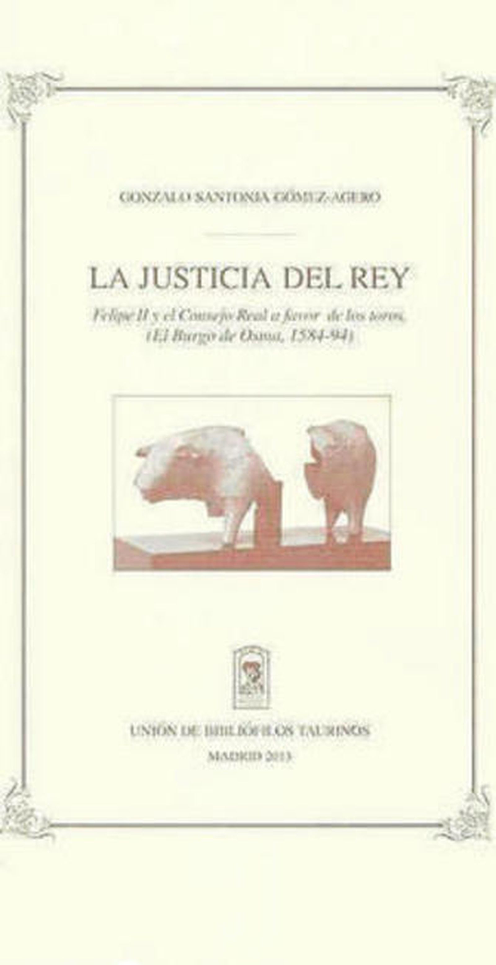 La Unión de Bibliófilos Taurinos (UBT) ha dado a la estampa, en una gran edición como es norma de la institución, la obra de Gonzalo Santonja Gómez-Agero "La justicia del Rey. Felipe II y el Consejo Real a favor de los toros. (El Burgo de Osma, 1584-94".