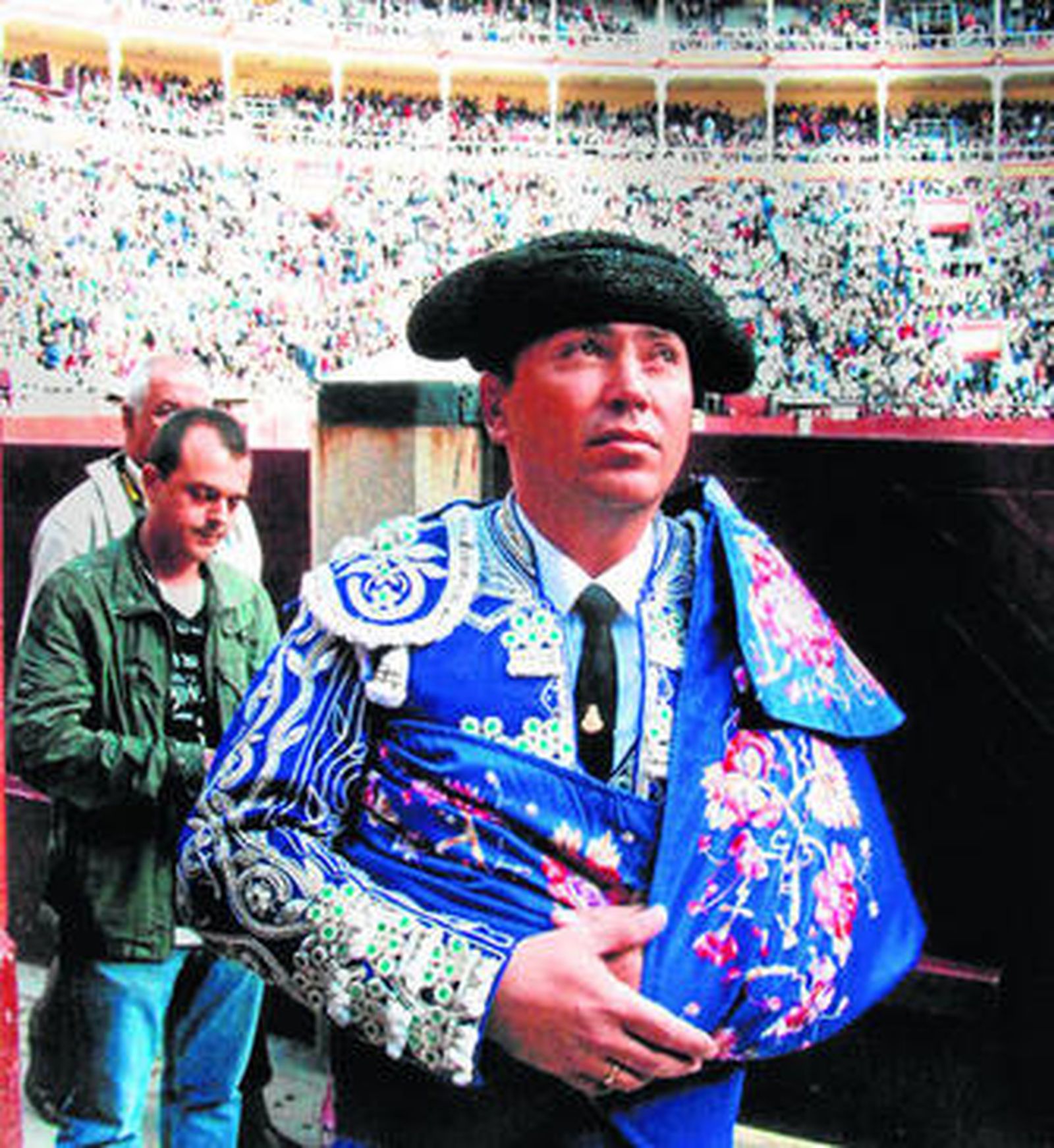 -Pues porque cuando el apoderado del torero me dijo que el 24 toreábamos en esta plaza, decidí que éste era el día por una razón que te cuento. El día de la cogida de Navalucillos yo llegué al hospital de Talavera con taquicardias, con una arritmia bastante fuerte y necesitando dos litros de sangre porque la cornada había sido fuerte. Ese día yo volví a nacer en Talavera y por eso hoy me despido aquí. En esta plaza me van a cortar esta tarde la coleta mi mujer y mis hijos y después punto final. Aunque los toreros nos retiramos pero no nos vamos.