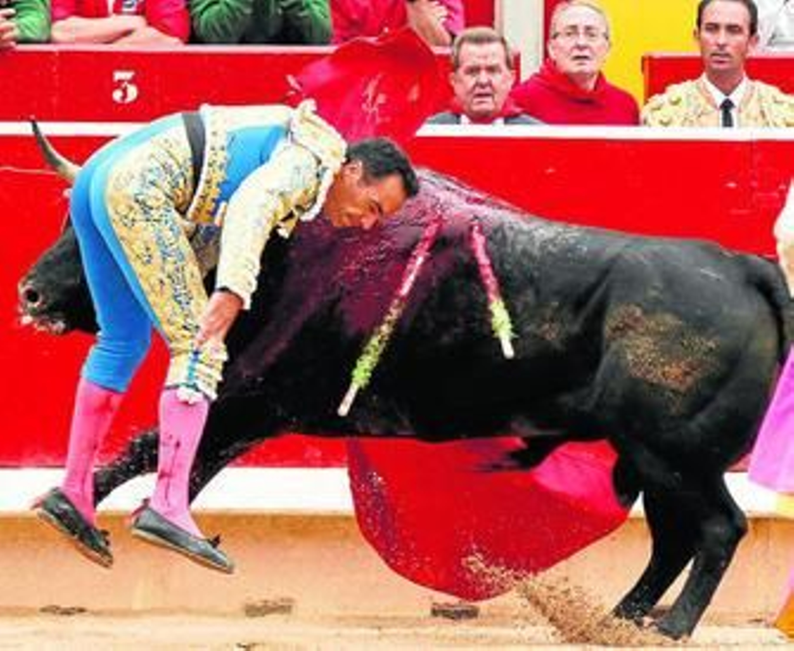 Después de que El Cid pasara por la enfermería, donde le curaron, se cambió el turno en la segunda parte de la corrida. El torero sevillano se las vio con un toro serio y ofensivo, que saltó en quinto lugar y al que le dieron muy fuerte en varas, tercio que duró casi tanto como la merienda de los mozos. En estos tiempos en los que apenas hay toros que aguanten un puyazo, cómo vamos a encontrar un toro que aguante dos varas eternas. Después de ese castigo, el animal hacía por embestir, por perseguir la muleta del saltereño, pero ya apenas si se tenía en pie.