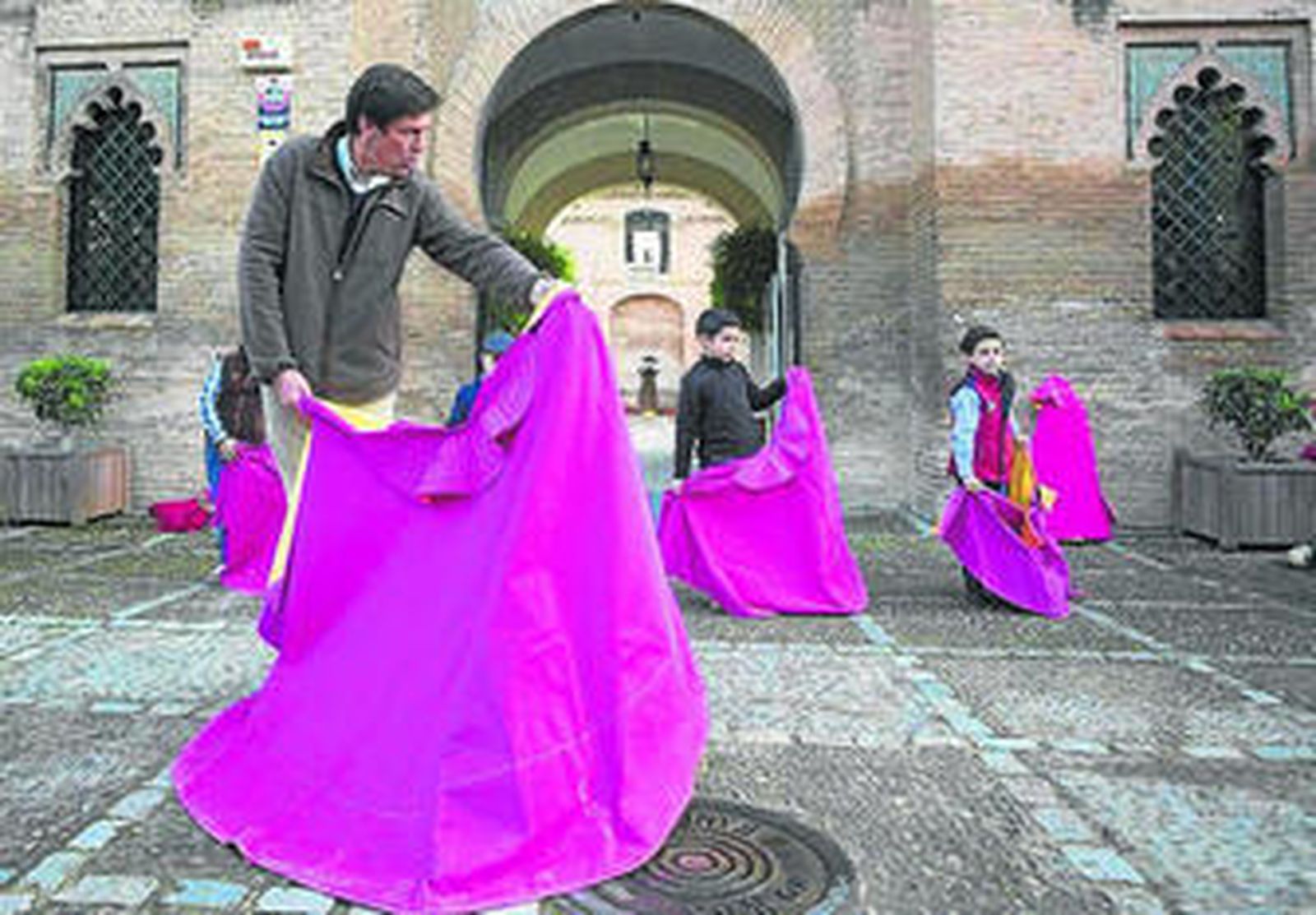 Cuando la actividad taurina está en boca de todo el mundo con esa fotografía de Francisco Rivera Ordóñez Paquirri toreando una becerra, con su hija en brazos, los Jardines de la Buhaira se sumaron ayer con un improvisado ruedo cuyos latidos toreros los pusieron decenas de niños y niñas, con la lección práctica del toreo de salón a cargo de Eduardo Dávila Miura. Muchos padres llevaron a sus hijos para que disfrutaran de ello en el denominado Toreo en la Calle y con fondo almohade.