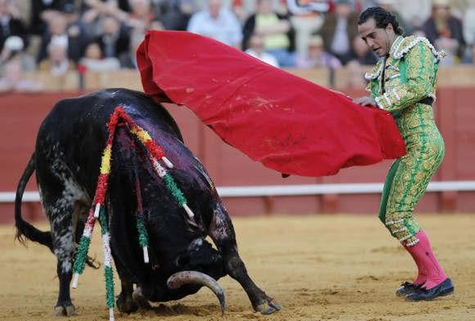 Incidencias: Plaza de toros de la Real Maestranza de Sevilla. Jueves 19 de abril de 2012. Media entrada. Alternancia de nubes y claros. Viento que molestó en la lidia. En el tercero fue ovacionado Tito Sandoval, tras picar bien.