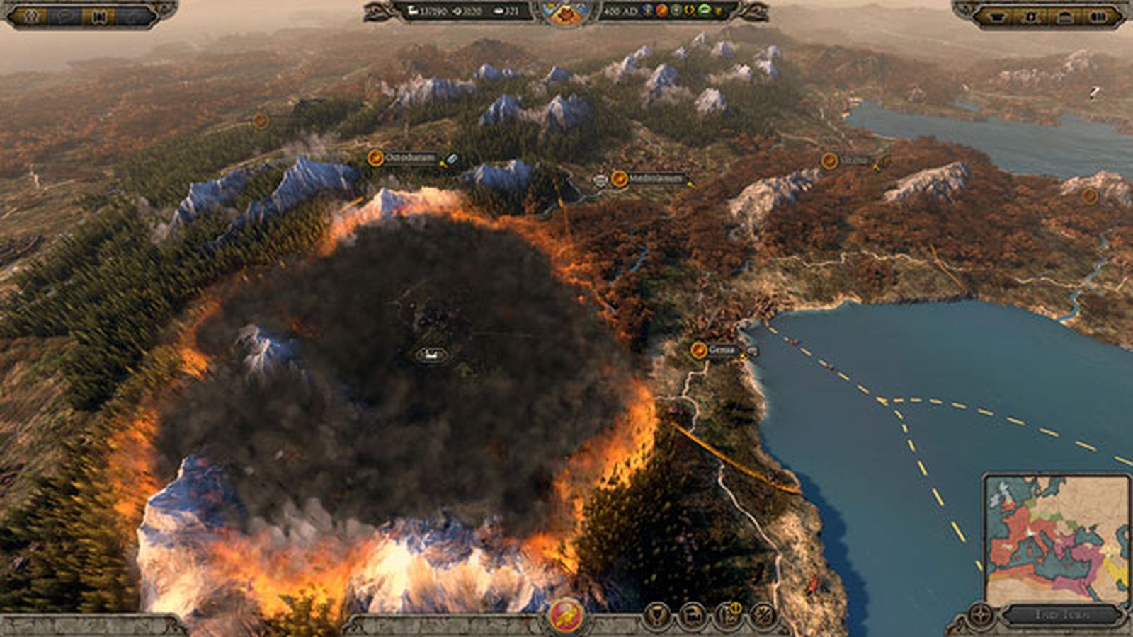 Tras escoger una de ellas el jugador se encuentra con el mapa de conquista, el cual ha sufrido notables cambios con respecto a entregas anteriores. En primera instancia, el detalle de las texturas tanto del terreno como de las ciudades es digno de admirar, todo está lleno de vida y movimiento, incluso soporta vistas isométricas elevadas. Pero si hay algo que destaca en este mapa de conquista es la táctica de tierra quemada, que con solo un click transformará a la facción nómada y asolará todas las tierras que antaño tuviera; un buen movimiento que permitirá que el jugador sobreviva a las hordas de hunos que asolan sus tierras, “Vive hoy para luchar mañana”.