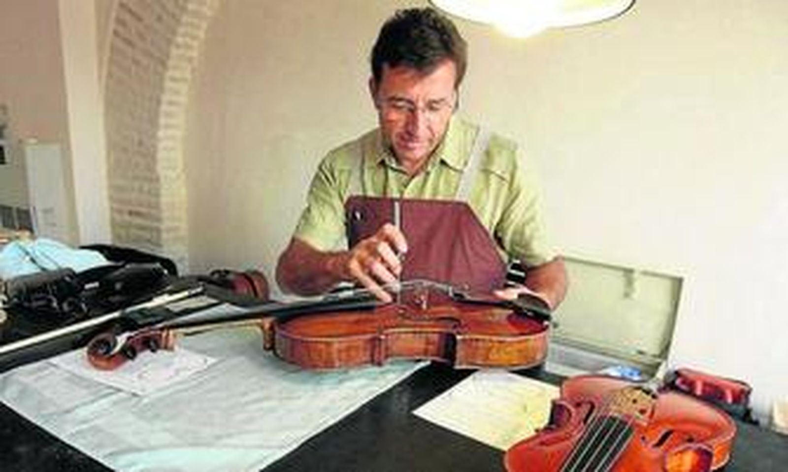 Otra de las prestaciones que las jornadas ofrecen es el servicio del luthier Christian Bayon. El francés, especialista en la construcción y mantenimiento de los instrumentos de cuerda, está siempre a la disposición de los estudiantes para ayudarles a poner a punto sus herramientas. Destaca la habilidad del artesano para afinar un violín mientras está conversando con uno de los integrantes del curso acerca de la procedencia y calidad del objeto, sin que le haga falta mirar sus manos para saber por donde se deslizan la gubia y el cuchillo. Otro ejemplo de porqué los cursos son tan prestigiosos y reúnen a estudiantes de todos los rincones de la geografía española.