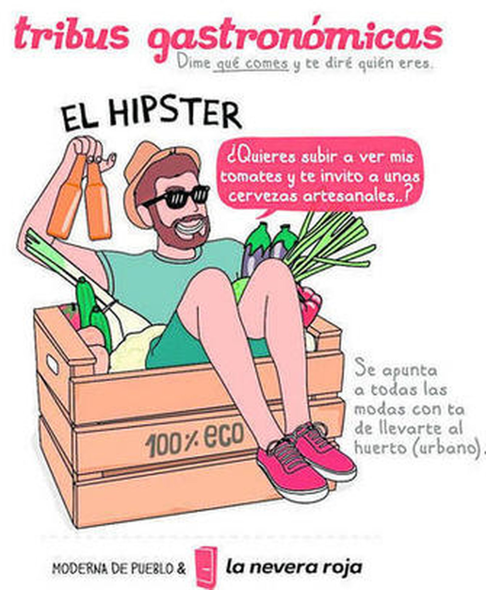Es posible que la pizza sea demasiado mainstream para los hípsters. Los que prefieren llevar un estilo de vida alternativo, que dicen que huyen de las modas, son amantes de lo natural, por lo que intentarán llevarte siempre al huerto (urbano). Cuando algo lleva el apellido natural, bio o eco, ahí está el hípster al acecho.
