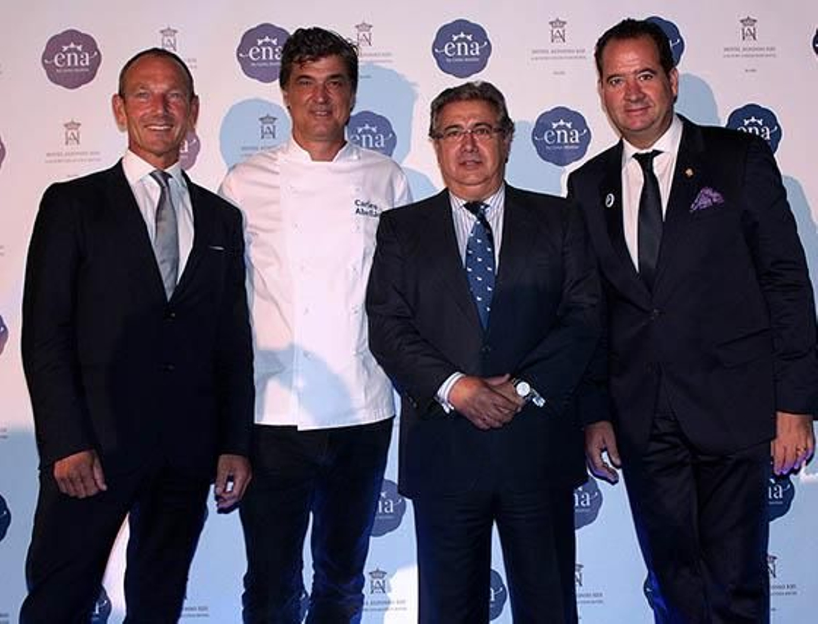 EL Hotel Alfonso XIII, de Luxury Collection, inauguró anoche su nuevo espacio Ena, liderado por el chef Carles Abellán, galardonado con una estrella Michelin. Ena es una propuesta única en la trayectoria del cocinero catalán, proponiendo la relación de dos cocinas con identidad, la catalana y la andaluza, creando un nuevo eje gastronómico: Sevilla/Barcelona. Ena propone, a juicio de Carles Abellán, una cocina xarnega, de padre catalán y madre andaluza, en un espacio más informal, creado por Sandra Tarruella, que sirve como contrapunto al lujo del hotel Alfonso XIII.