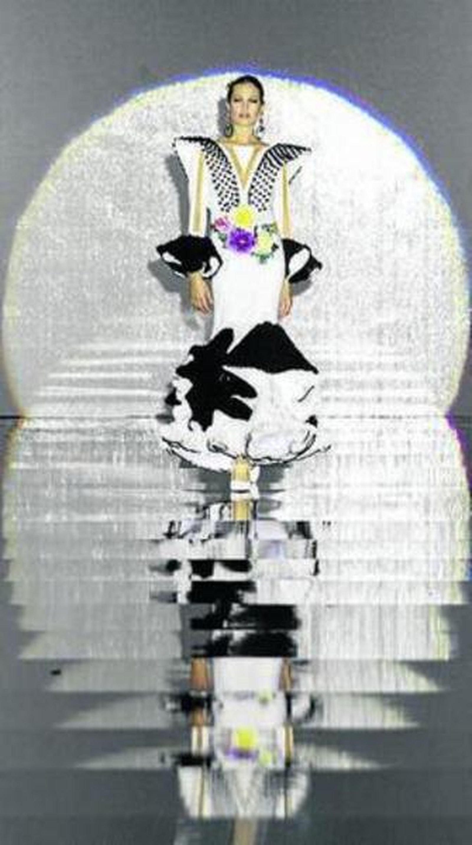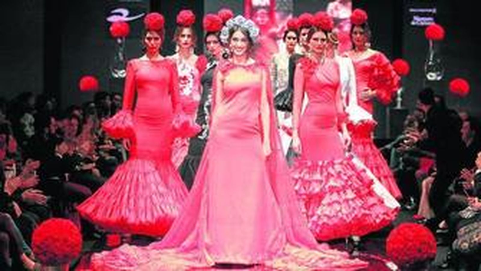 De forma muy distinta terminó la jornada de Simof de la mano del diseñador sevillano Javier García y sus Flores a ella. Su propuesta se inspira en las fiestas de Andalucía, en las que el clavel es un elemento clave. Ya se han visto guiños a esta flor en varias colecciones. Los colores clásicos forman parte de su inspiración: el rojo como estrella, negros de las mantillas y las abuelas de roete, blancos de las paredes encaladas, morados y verdes de la Semana Santa y grises y platas para las sombras. De nuevo, complementos de hojalata y metales, la guinda para las flamencas de 2016.