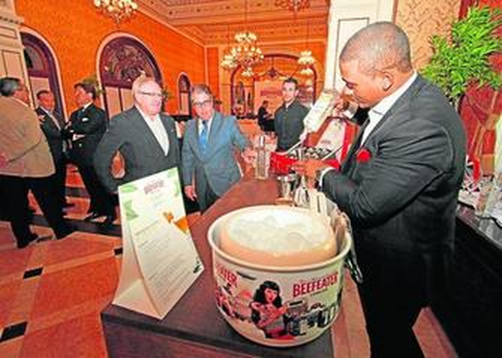 Al acto también acudió Frank Lola, que es el embajador de Beefeater en España e hizo las veces de traductor de Desmond Payne. De padre español y abuelo inglés, pero también con raíces guineanas, este madrileño de nacimiento se dedica "a hablar de ginebra". Lola destacó la versatilidad de esta bebida, por lo que es muy adecuada para la preparación de cócteles como el que se presentó ayer para la ocasión, donde se mezcla Beefeater con zumo de los dos cítricos y una cucharadita de mermelada amarga, entre otros ingredientes.