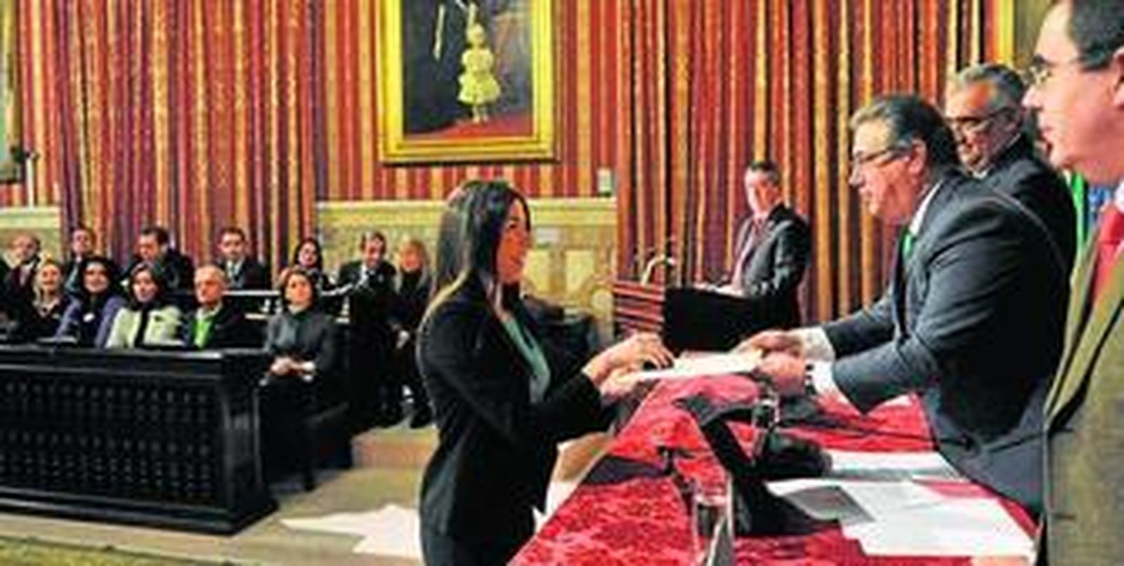 El alcalde de Sevilla, Juan Ignacio Zoido, entrega los diplomas a los mejores expedientes, ayer.