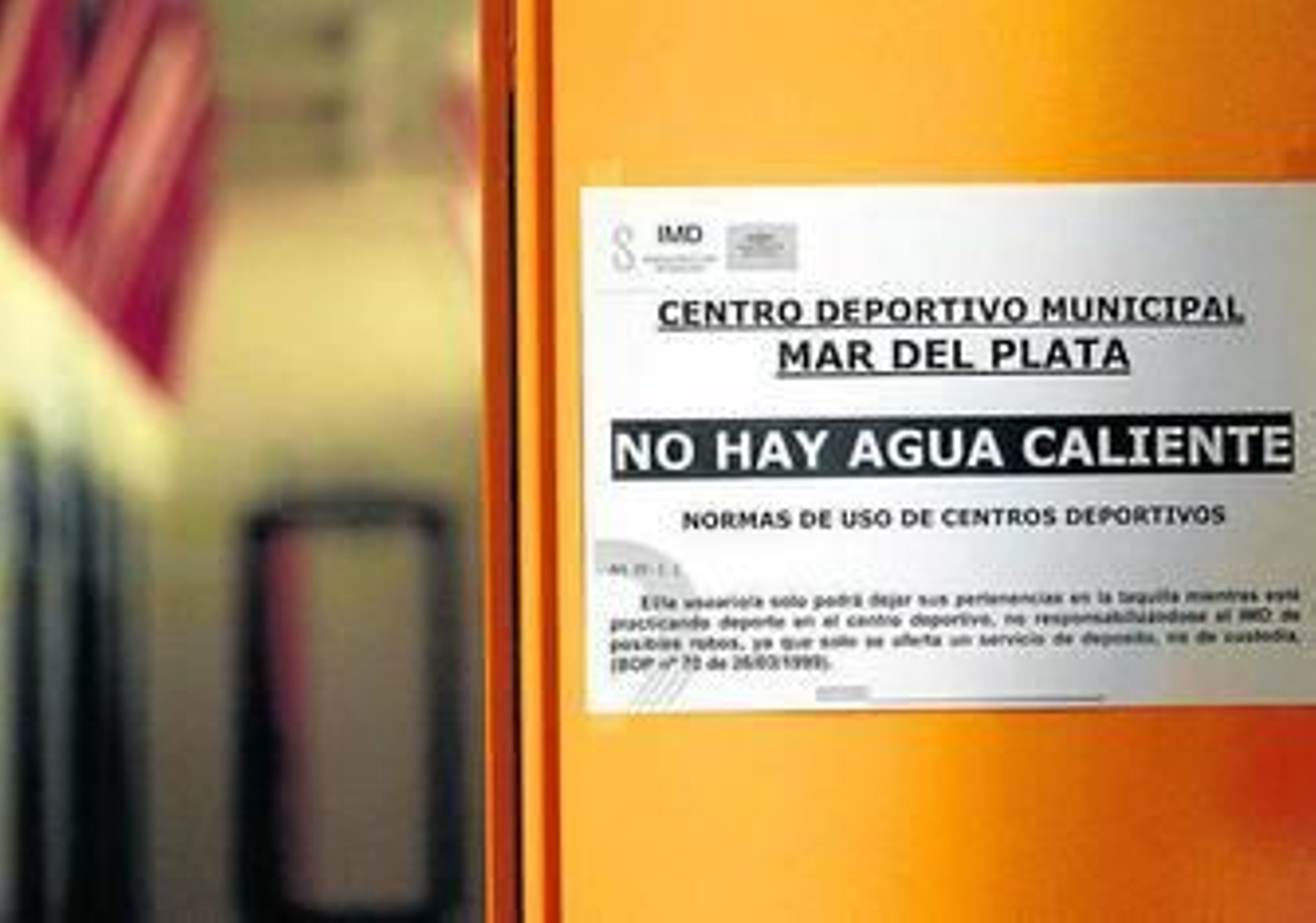 En el Centro Deportivo Mar de Plata, este cartel avisa a los usuarios de que "No hay agua caliente". Bajo la frase, se indican normas de uso de las instalaciones. Algunos ya habrán pensado que también debería ser norma de obligado cumplimiento que el agua, al menos templada, no falte en las duchas.