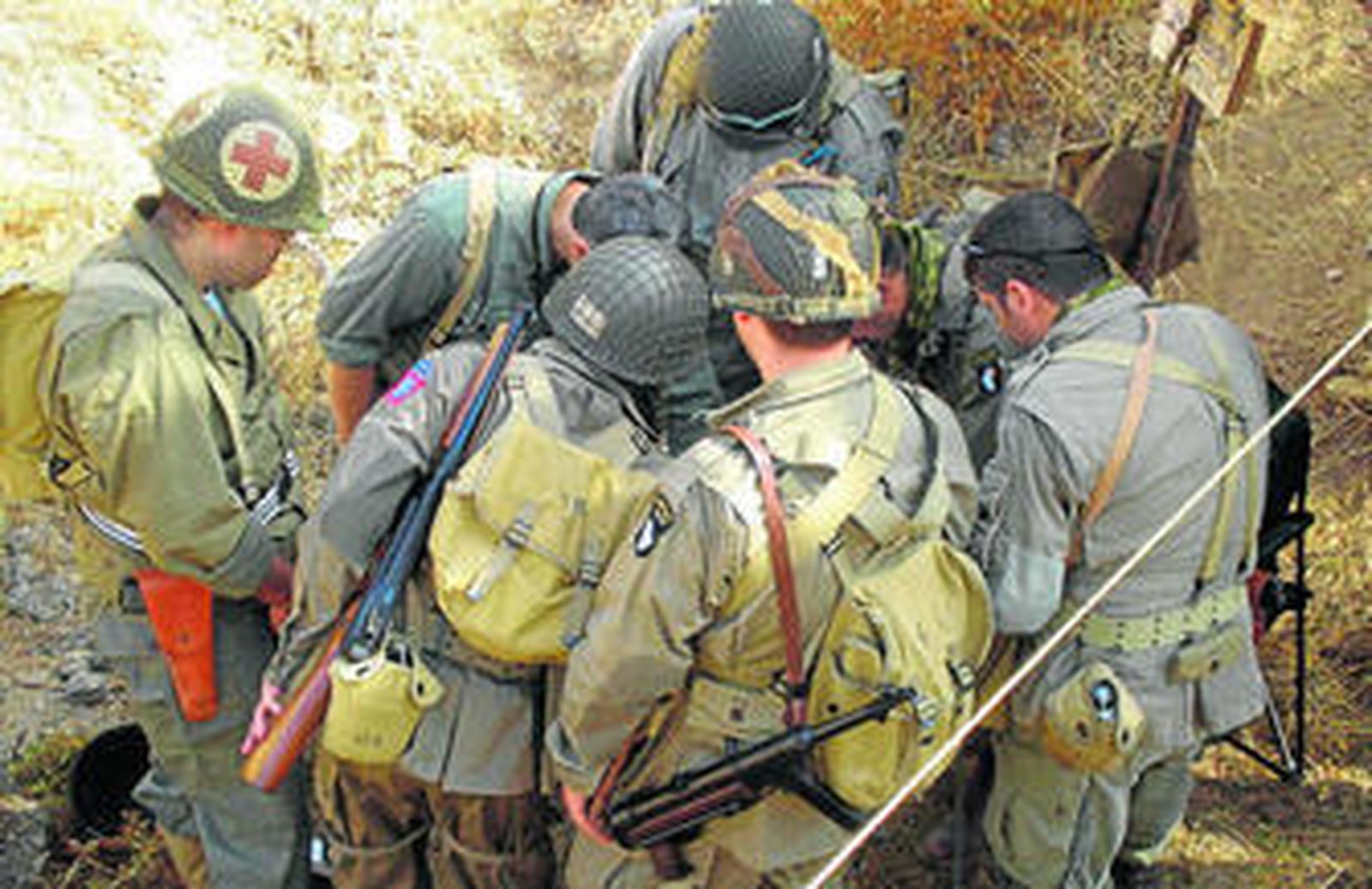 La mañana de ayer, los miembros del club de Osuna organizaron una actividad junto a algunos socios del club Armygottes de Córdoba y el Western Front de Cádiz. Desde las diez y media de la mañana, las antiguas canteras ursaonenses se convirtieron durante tres horas en las tierras aledañas al monasterio de Montecassino. "El público que ha acudido, que se movía libremente por la zona de juego siempre con chalecos reflectantes para ser identificados y unas gafas de protección por seguridad, ha podido ver una simulación del asalto en tiempo real, con heridos, médicos corriendo, repliegues, soldados. Todo lo que se ve en una película pero en vivo y en directo", comenta contento Rafael Ortiz, portavoz del Club de Osuna, por el éxito de la actividad.