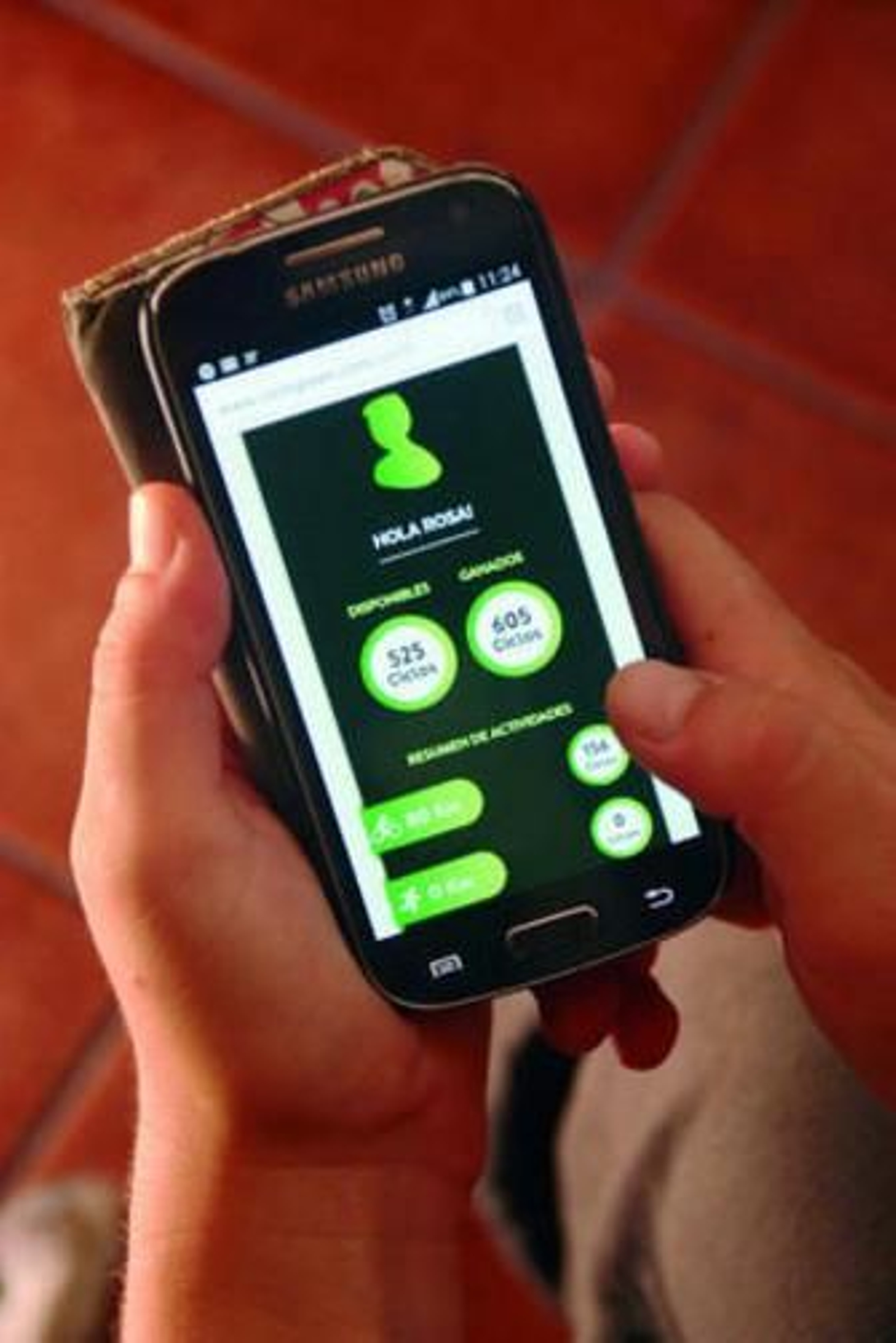 Cada vez que el usuario salga de casa puede activar la aplicación e irá sumando puntos o ciclos (el nombre dado en la plataforma). Por cada kilómetro en bici se obtienen dos ciclos y por cada kilómetro andado cuatro ciclos.