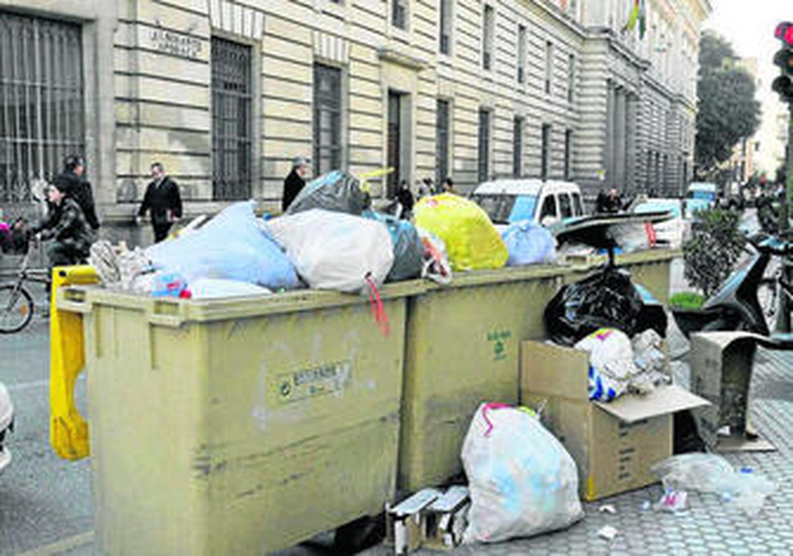 Contenedores rebosantes de residuos de todo tipo, una imagen cada vez más común en calles céntricas. El plan municipal de retirar los contenedores grandes e instaurar pequeños en el interior de los edificios no da demasiados resultados y muchos acuden a este punto para verter su basura.