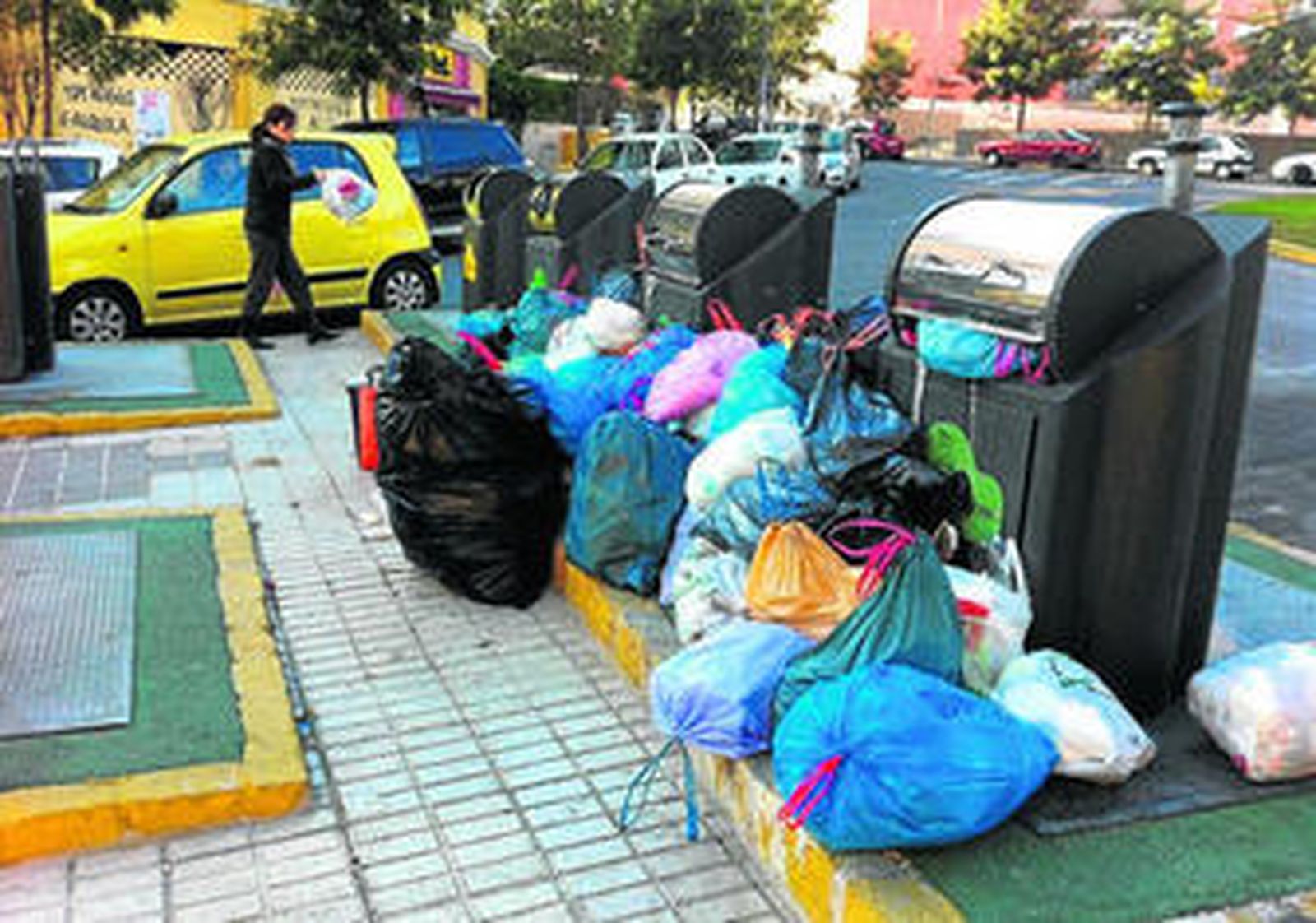 Hace unos días se publicó en esta misma sección una imagen similar en pleno centro de Sevilla. Ahora le toca el turno a San Juan de Aznalfarache. En fin de semana, éste es el aspecto que presentan sus contenedores rebosantes de basura.