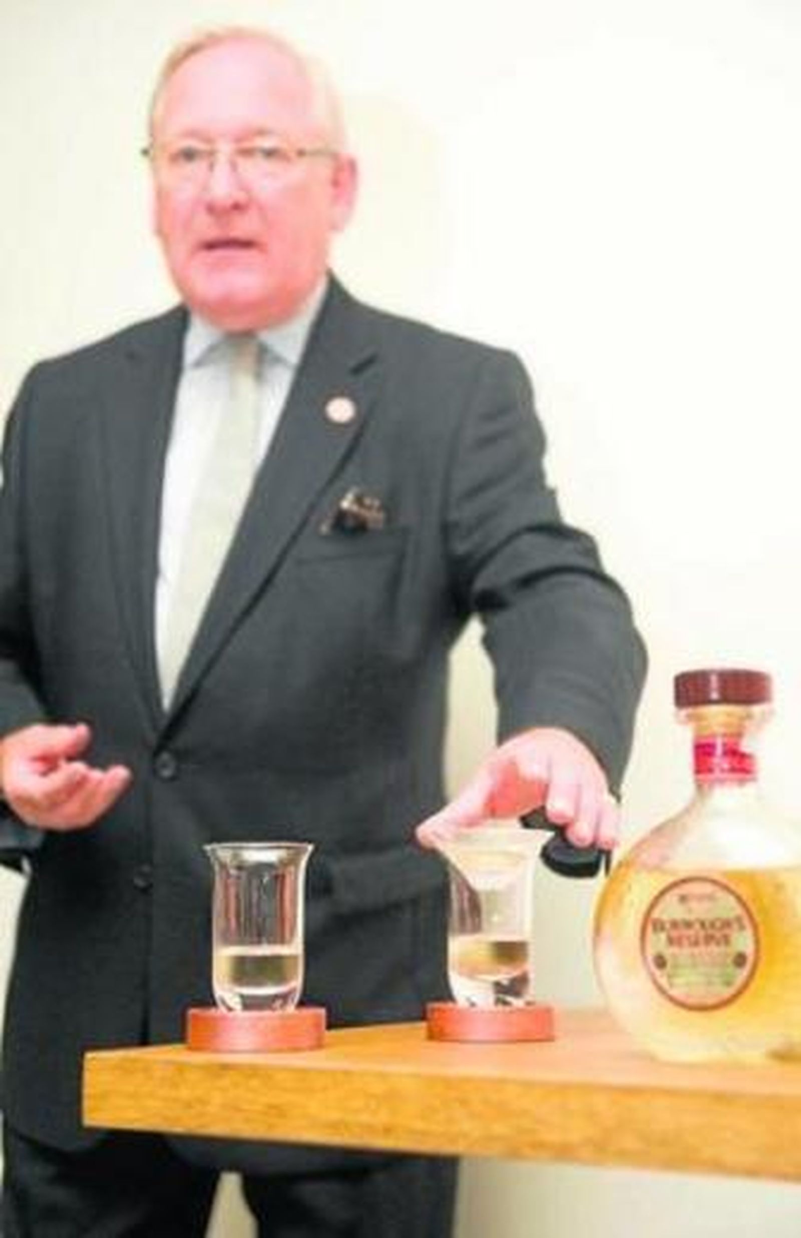 La puesta de largo, a cargo de Desmond Payne, llegó antes de los postres. El maestro destilador mostró su entusiasmo por haber hecho algo diferente, pese a que ya existen en el mercado otras ginebras de este perfil. "Burrough's se diferencia como producto, a la hora de consumirla, o cómo hay que tomarla". La receta es la misma que la de Beefeater. Se utiliza la misma mezcla que creó James Burrough's -de ahí el nombre- en 1860. Para la destilación se utiliza un alambique original de cobre con capacidad para 200 litros. Y lo que hace a esta ginebra única es que se deja envejecer en barricas de un licor de aperitivo de la zona de Burdeos llamado Jean de Lillet. "Ya existen una o dos marcas que han probado hacer esto en madera, pero para mí lo realmente importante es el vínculo entre el producto que había dentro de la barrica (el Lillet) y el producto que estoy exponiendo. Probamos barricas de bourbon, de ron, de coñac, pero el vínculo no existía y el sabor no acababa de ser bueno. Para preparar el Lillet usan las pieles de la naranja, que también las tenemos nosotros, usan quinina... vi que podía funcionar". La ginebra se deja reposar en las barricas hasta que está lista. "Lo que no tiene es un tiempo determinado como el coñac o el whisky. Tengo muy claro que esto tiene que ser ginebra al final del día". El color dorado resultante es una de las características que distingue Burrough's.