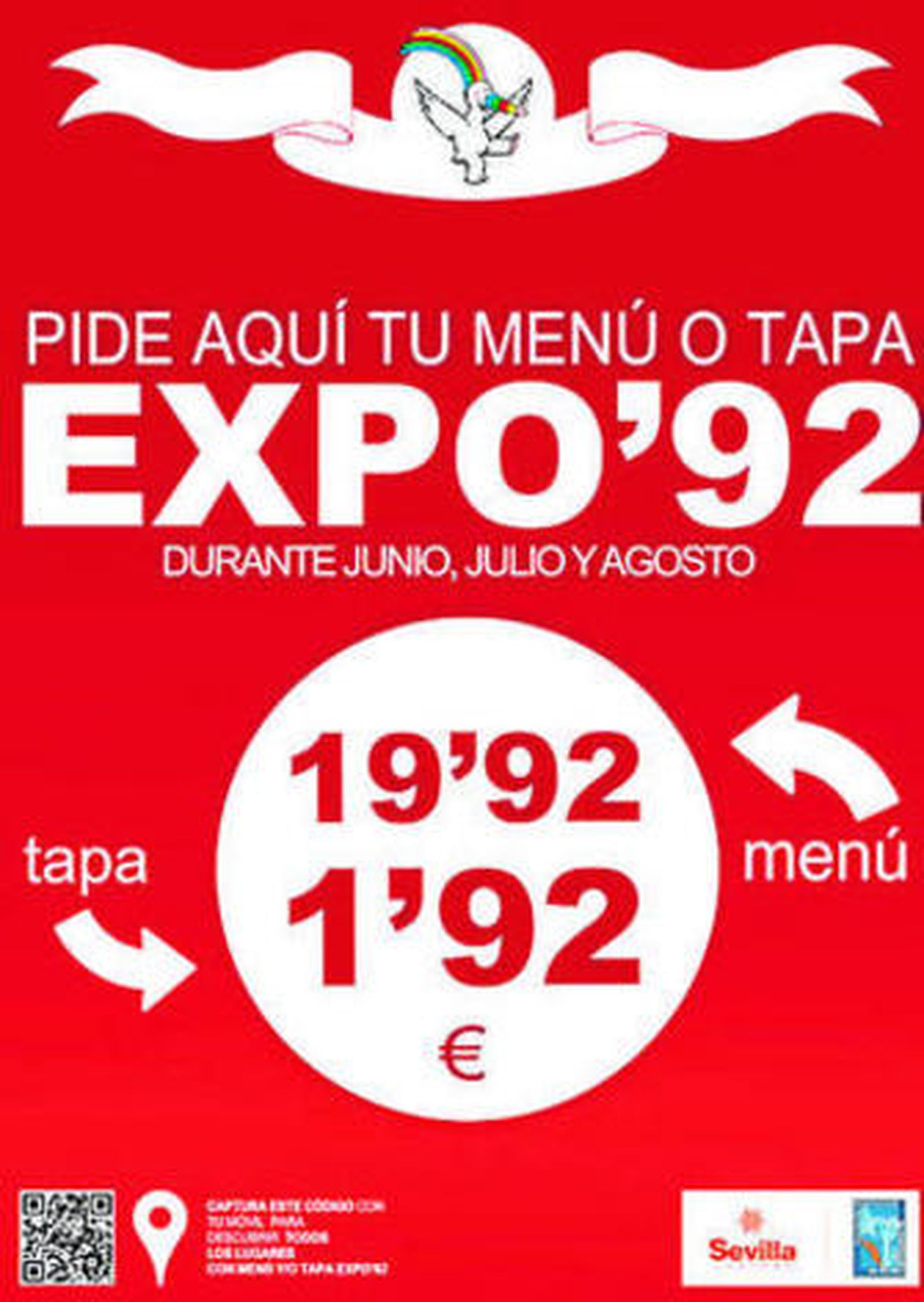La Exposición Universal de 1992 no sólo sirvió para que toda un generación de sevillanos conserven intactos los recuerdos de su niñez en alguno de los pabellones de la Isla de la Cartuja. La Expo 92 supuso todo un revulsivo económico para la ciudad y ahora, y hasta el 31 de agosto, la Asociación Empresarial de Hostelería de Sevilla y Provincia y cerca de 40 establecimientos le rinden homenaje con una iniciativa muy económica: tapas a 1,92 y menús a 19,92.