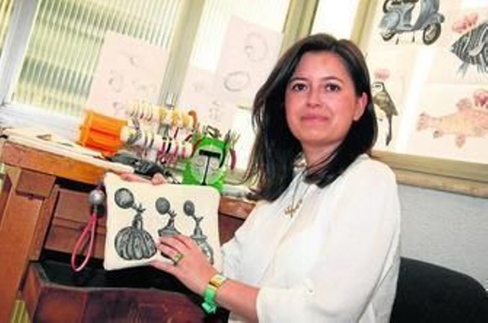 María José Hoyuela posa en su taller de Sevilla con algunos diseños.