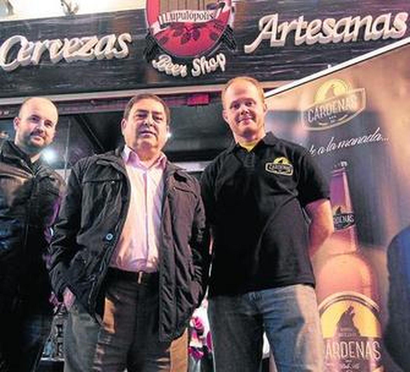 La tienda Lupulópolis (calle José Gestoso, 12) fue el lugar elegido para la presentación este lunes de Cervezas Cárdenas. Con una primera edición de entre 15.000 y 20.000 botellas, la primera cerveza de la empresa es una Pale Ale que está ya a la venta en este espacio por 2,75 euros el tercio. En los próximos meses, la empresa sacará una tipo Stout y ya están trabajando también en una roja.