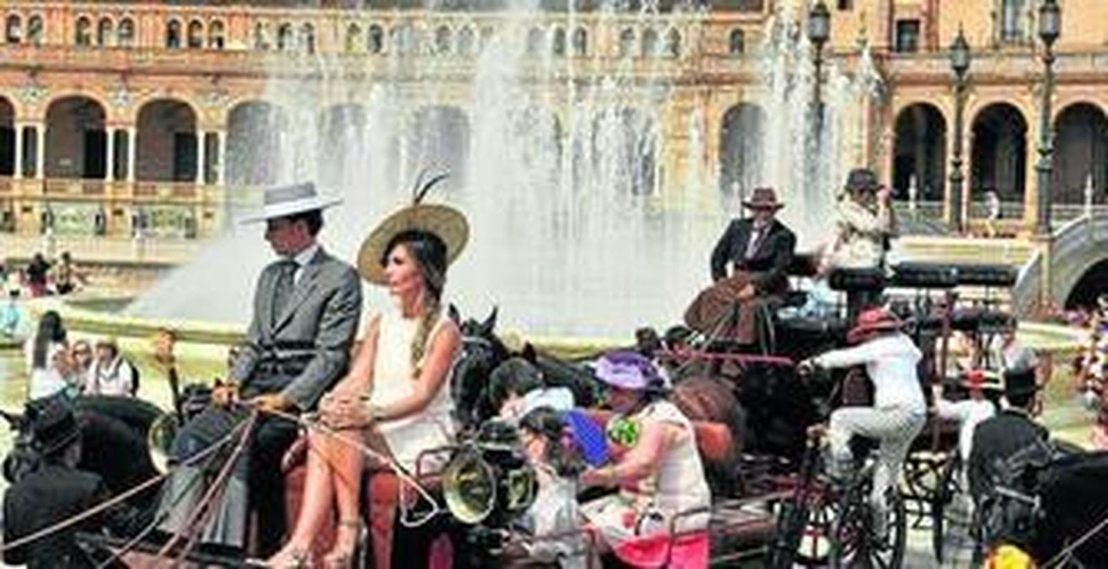 Precisamente ante la estatua de este arquitecto sevillano, Ramón Moreno de los Ríos, vocal de la junta directiva del RCEA, organizaba a los cocheros y propietarios en la explanada alrededor de la fuente antes de la salida en dirección al Ayuntamiento. A pesar del calor que hizo en la tarde de ayer el público -en su mayoría turistas- se concentró bajo este inusual sol de mayo para disfrutar del espectáculo. Sin embargo, algunos sevillanos se acercaron a la Plaza de España, como el aficionado Pedro Rodríguez: "Es una oportunidad para que la gente conozca este patrimonio y que se valore el esfuerzo de quien mantiene esta tradición". También estuvo allí Gonzalo Argüeso, juez de uno de los concursos que se celebra durante el día de hoy dentro de la programación del fin de semana, que, por un día, dejó a un lado sus obligaciones para disfrutar del desfile. Argüeso explicó que, hasta los años 70, existía la costumbre de enganchar antes de la Feria a los caballos para que se acostumbraran a pasear por la ciudad, una iniciativa que, en cierta manera, se retoma con el acto celebrado ayer.