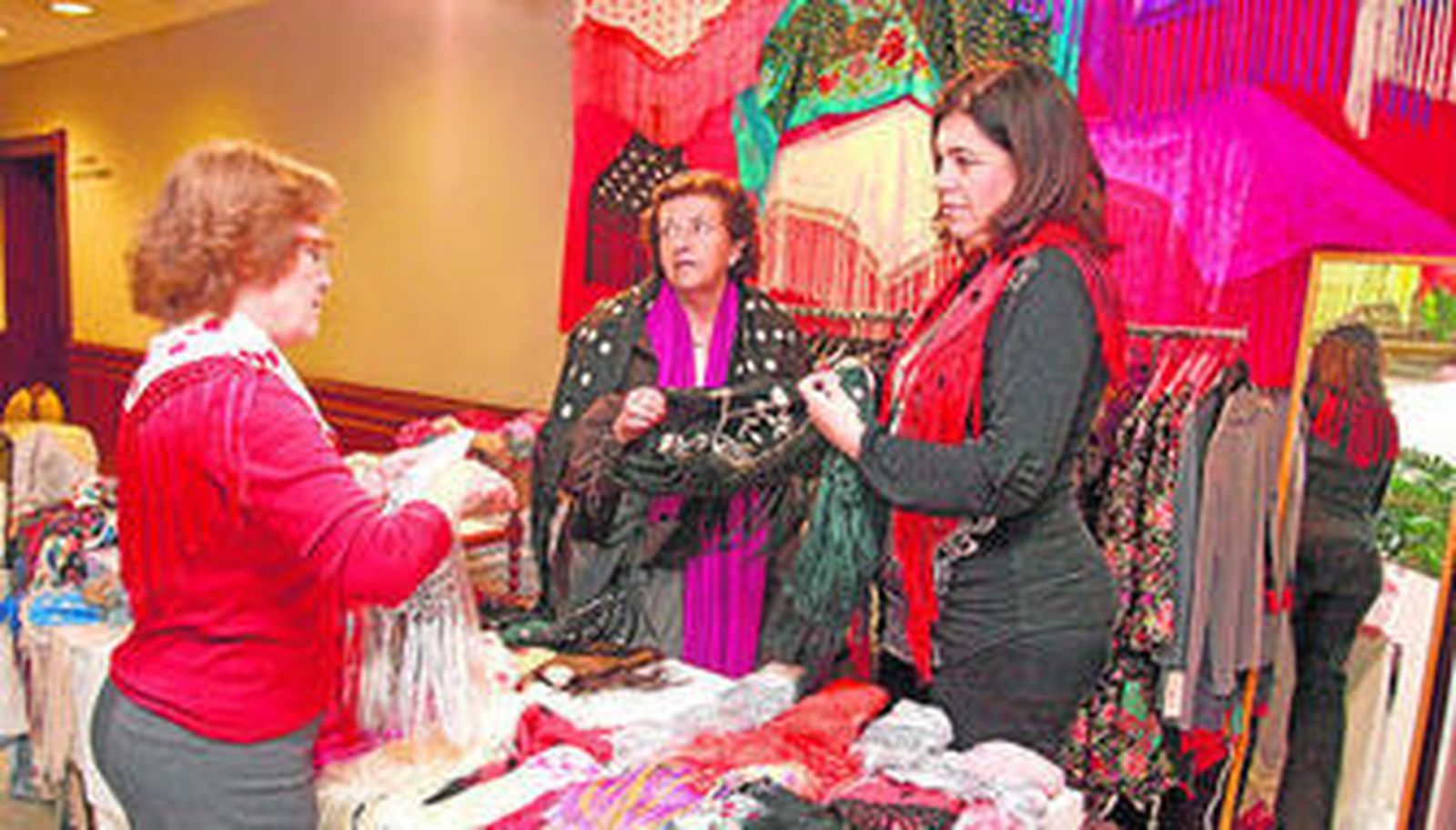 De El Puerto de Santa María vienen Carmen Revuelta, Mary Lobatón y Soledad Rasero, al frente de la tienda El Revuelo. "Nosotras nacimos y crecimos aquí, con Nuevo Futuro", comenta Soledad Rasero. La moda parisina y los mantoncillos, "con diseños que permiten su uso durante todo el año", destacan en este puesto, fiel a la cita desde sus orígenes. "Nosotros diseñamos los mantoncillos, en Vietnam los bordan y las famosas artesanas de Cantillana colocan los flecos", apunta la empresaria.