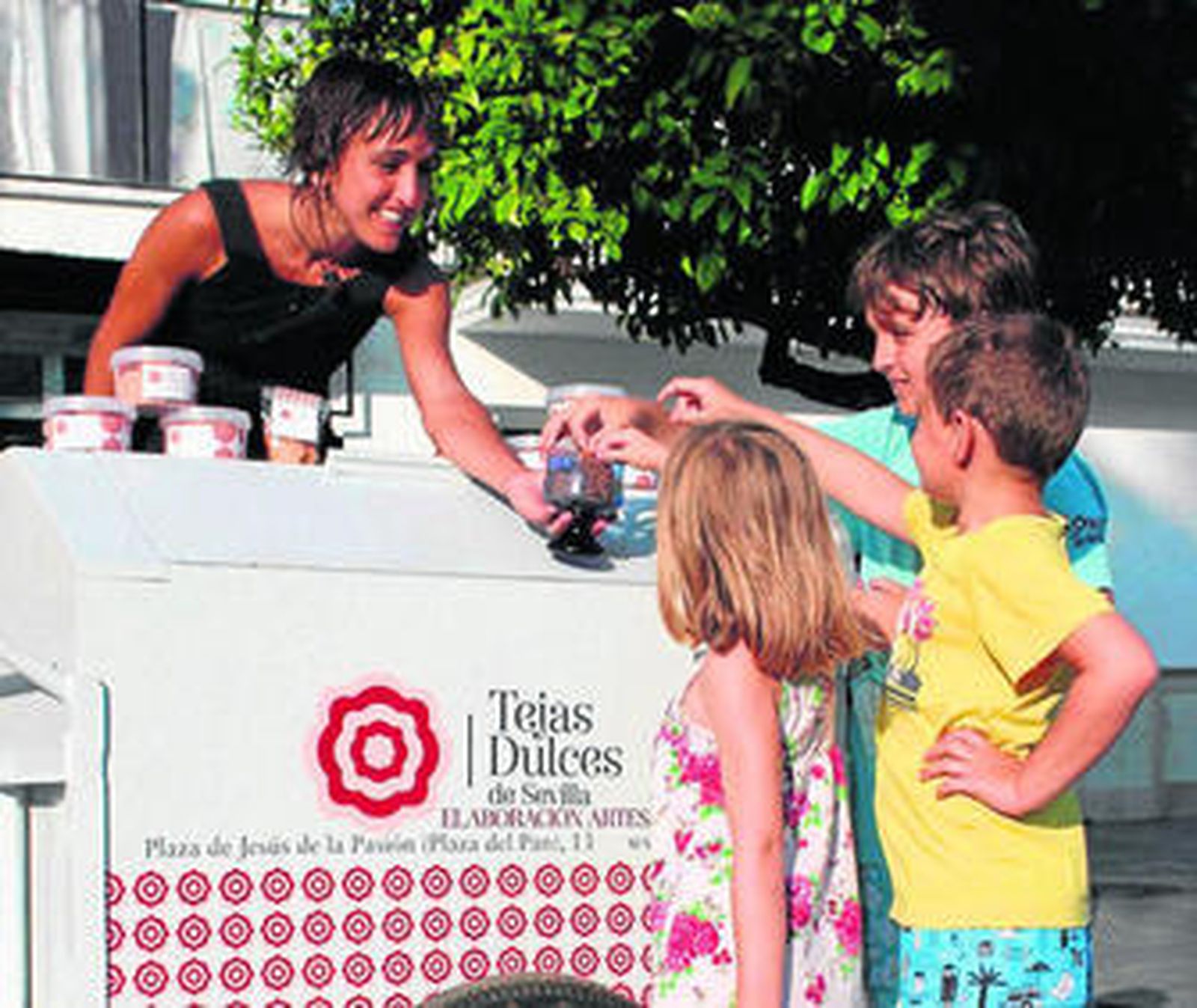 Así, desde el pasado 1 de julio Lola se desplaza cada mañana hasta la Plaza del Cabildo, epicentro de la actividad comercial del municipio, con el carro que Tejas Dulces ha hecho su símbolo y que durante el invierno permanece en la tienda de la Plaza del Pan. "Al principio a la gente le chocaba un poco pero cuando prueban el producto, les gusta bastante", asegura Lola. Además, continúa, "muchos de nuestros clientes de Sevilla ya han descubierto que estamos aquí y están encantados".