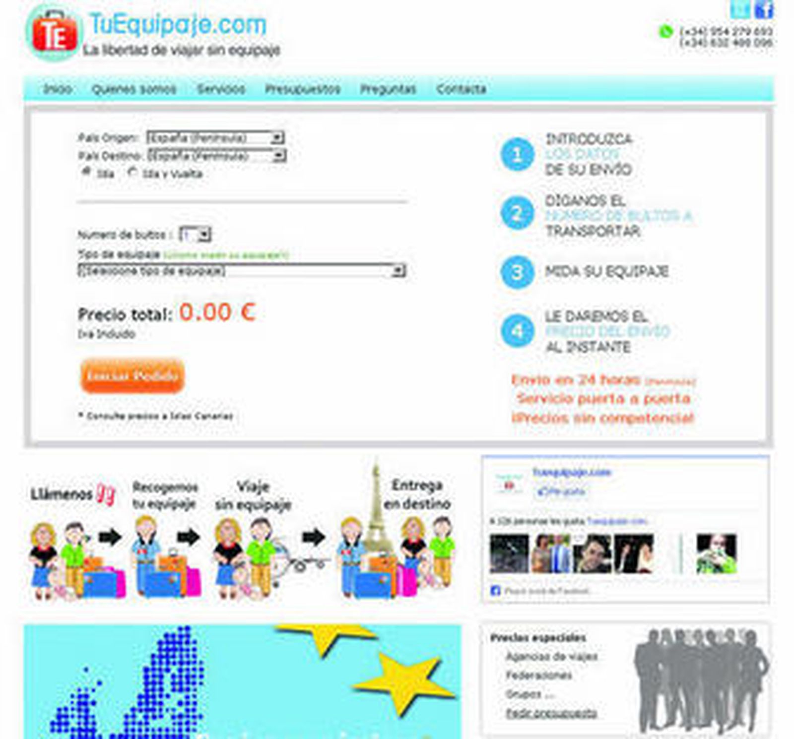 Uno de los aspectos que diferencia a Tuequipaje.com de otras empresas de transporte convencionales es que desde que se puso en marcha, la contratación del servicio puede realizarse exclusivamente a través de internet. A través de la dirección www.tuequipaje.com, el cliente puede solicitar el servicio, calcular el coste del mismo e indicar todos los datos necesarios para la entrega. Aun así, cuenta Mayka, "mucha gente sigue prefiriendo contactar con nosotros a través del teléfono y, por eso, prestamos servicio telefónico las 24 horas del día".